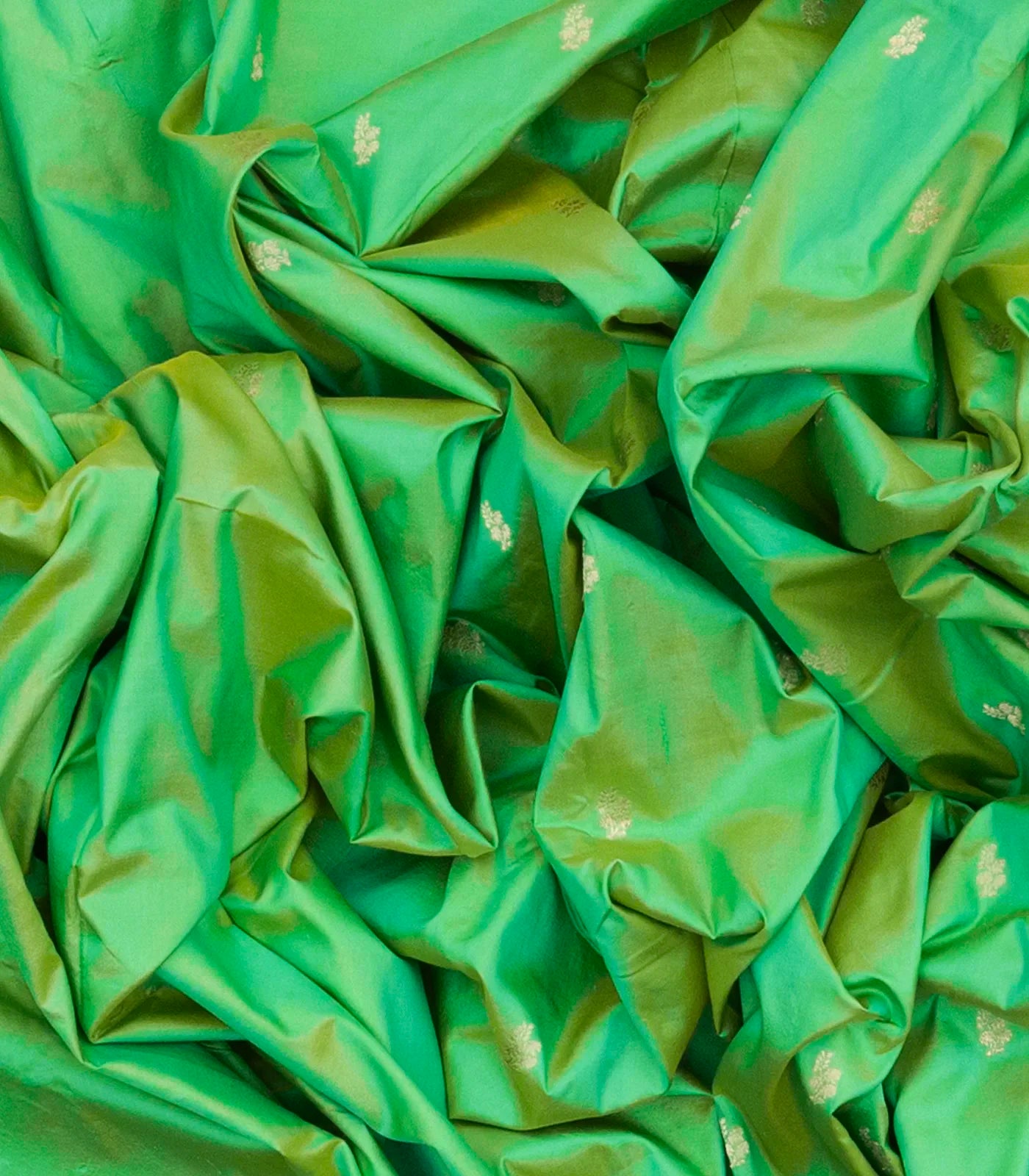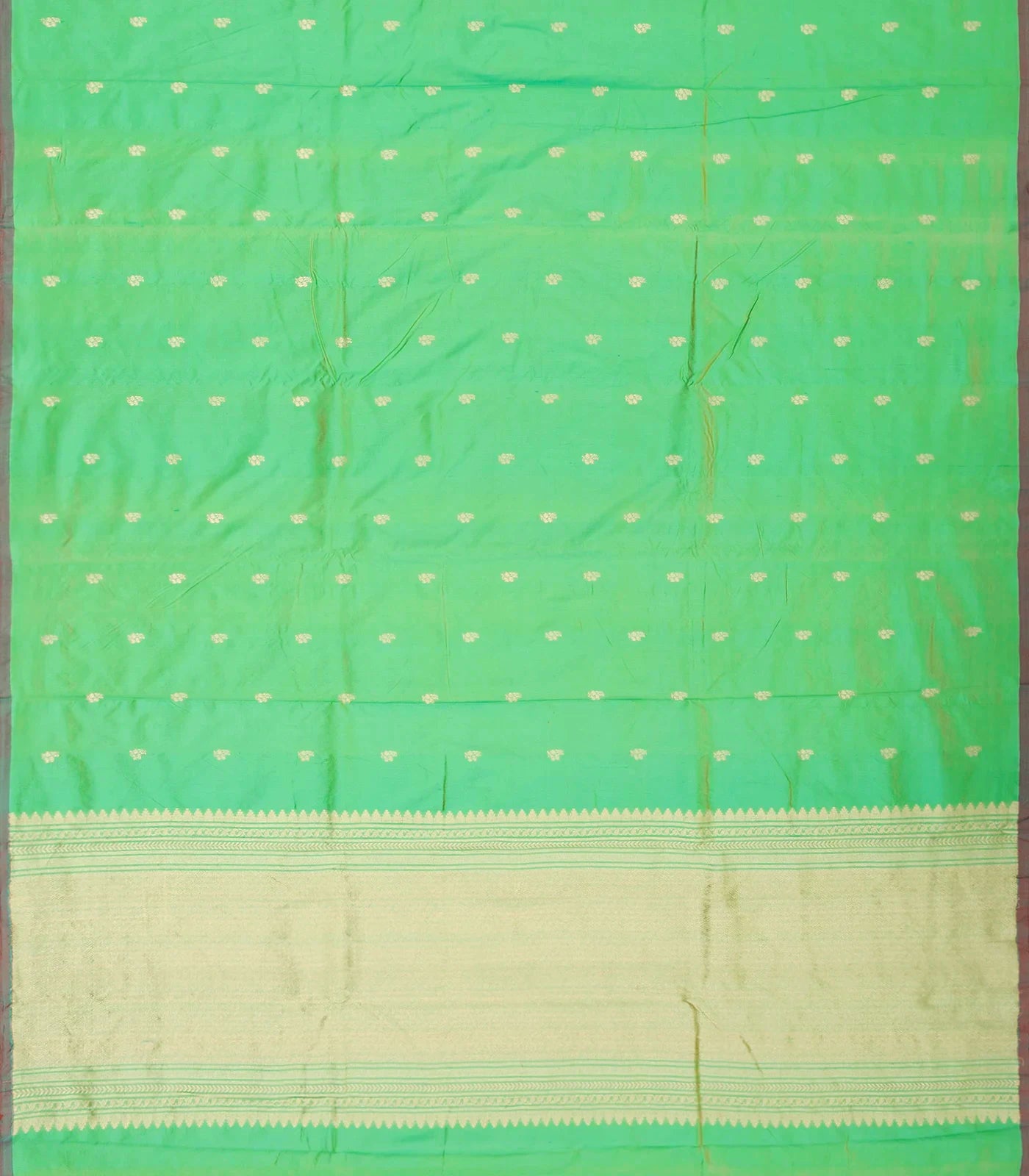 Aquamarine Handloom Banarasi Silk Saree With Floral Buttas-BE1232