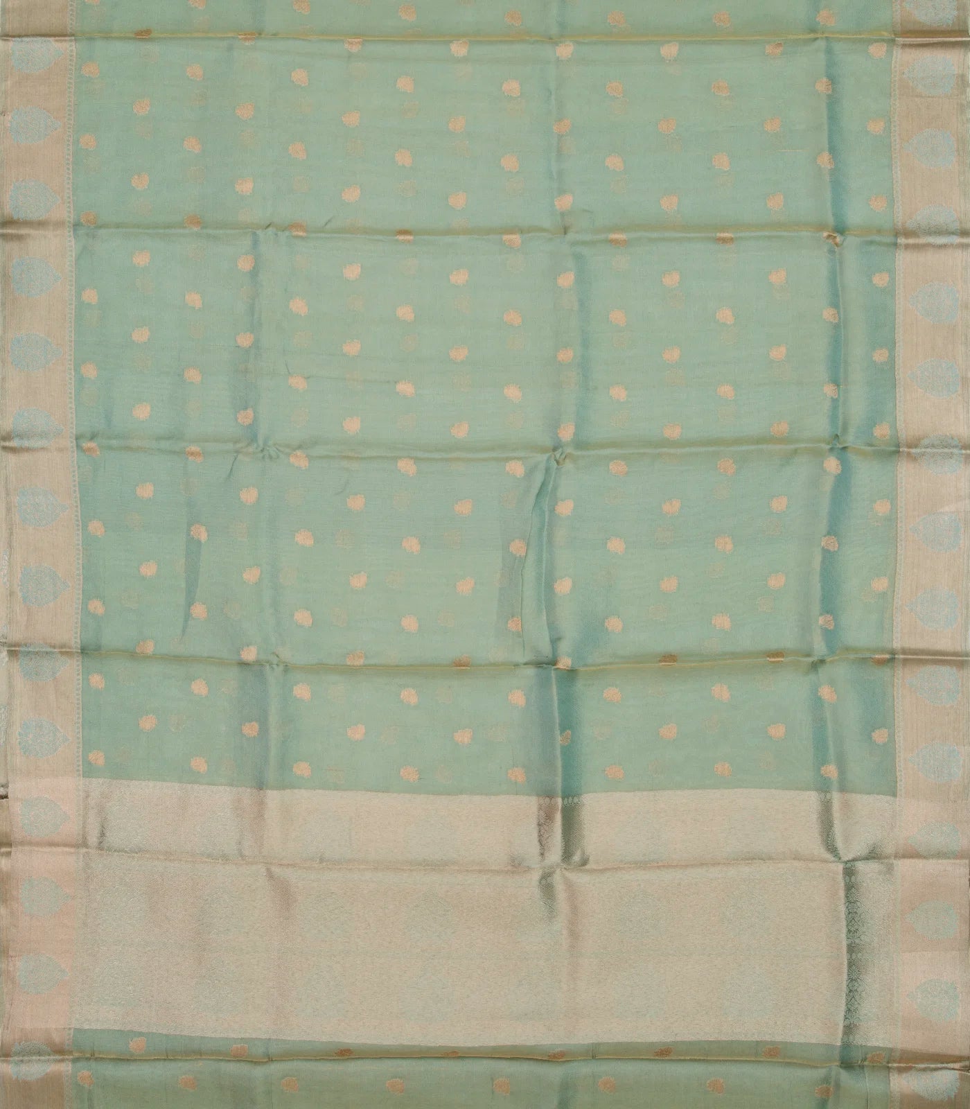 Aquamarine Handloom Banarasi Tissue Silk Saree With Floral Motifs-BE1580