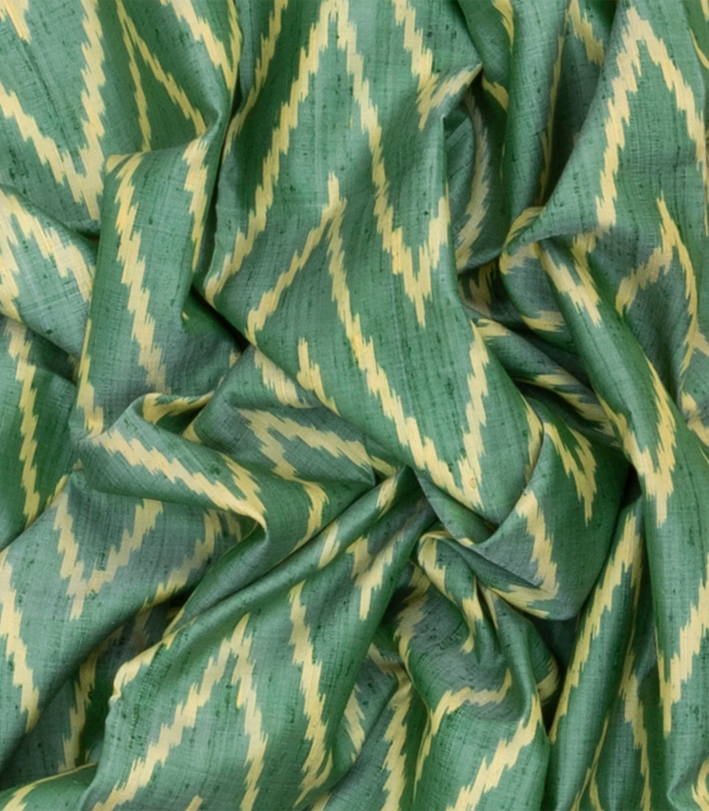 Aquamarine Handloom Ikat Dupion Silk Saree With Chevron Motifs-Aquamarine