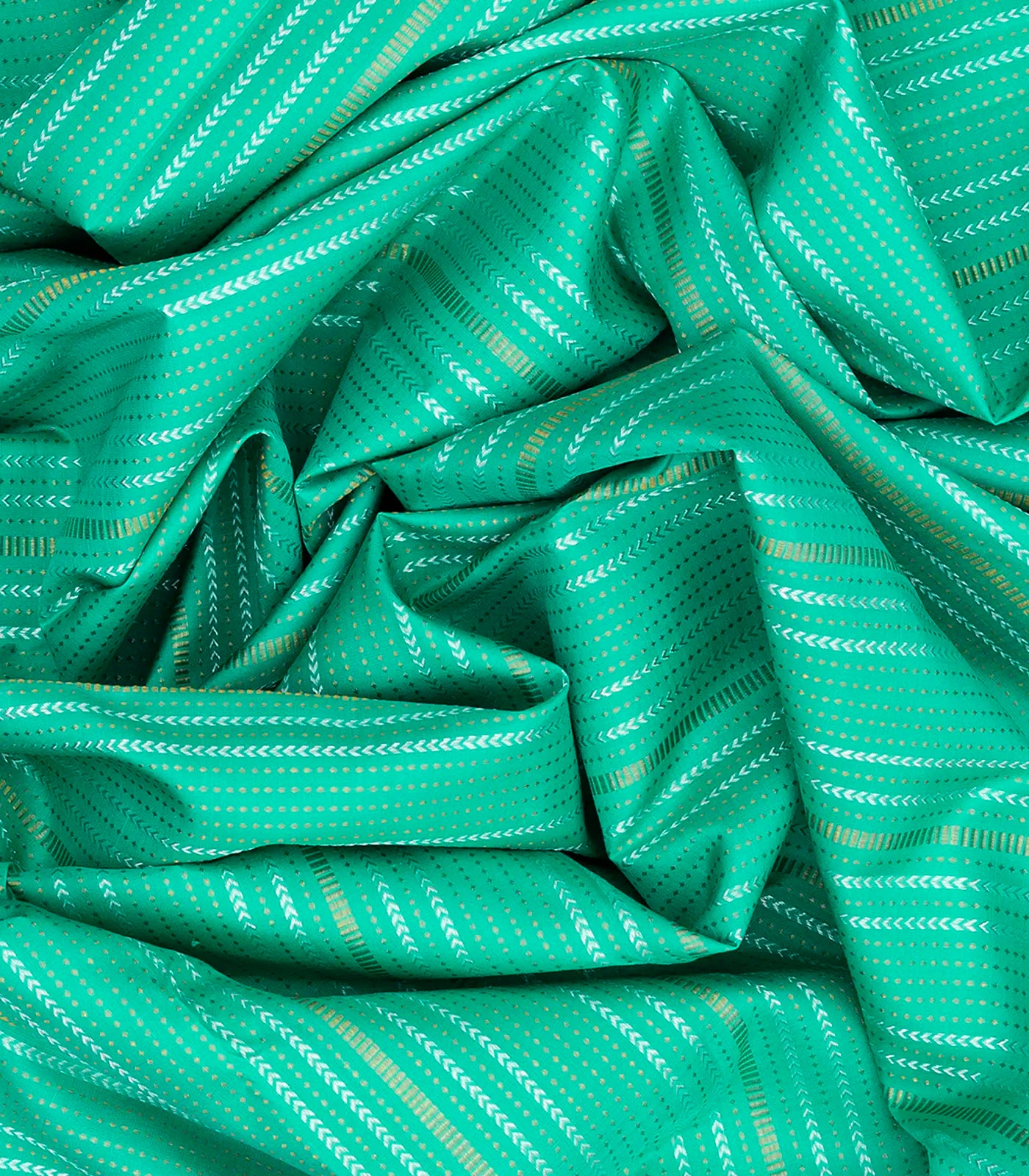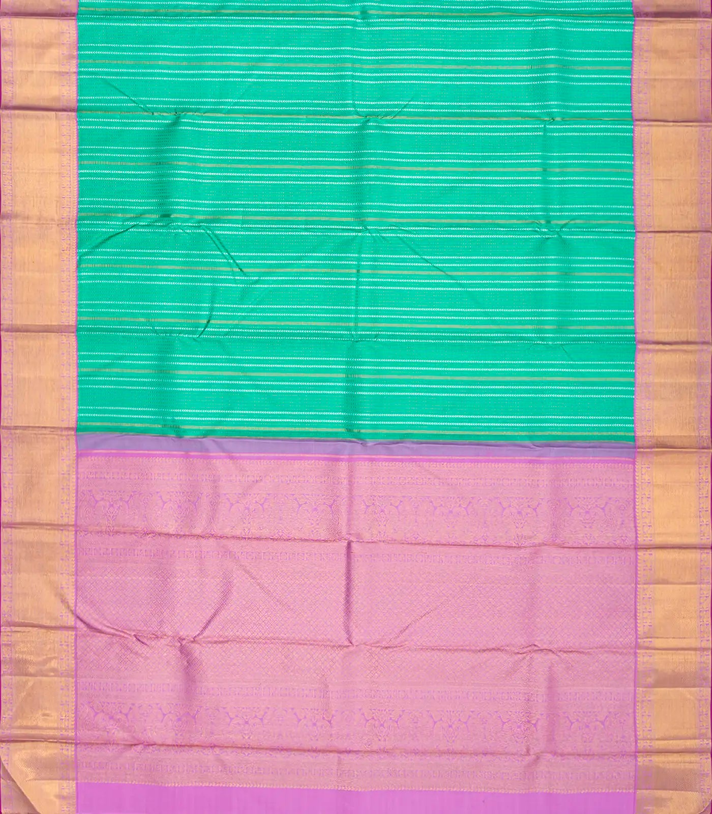 Aquamarine Handloom Kanchipuram Korvai Silk Saree Zari Stripes-Aquamarine