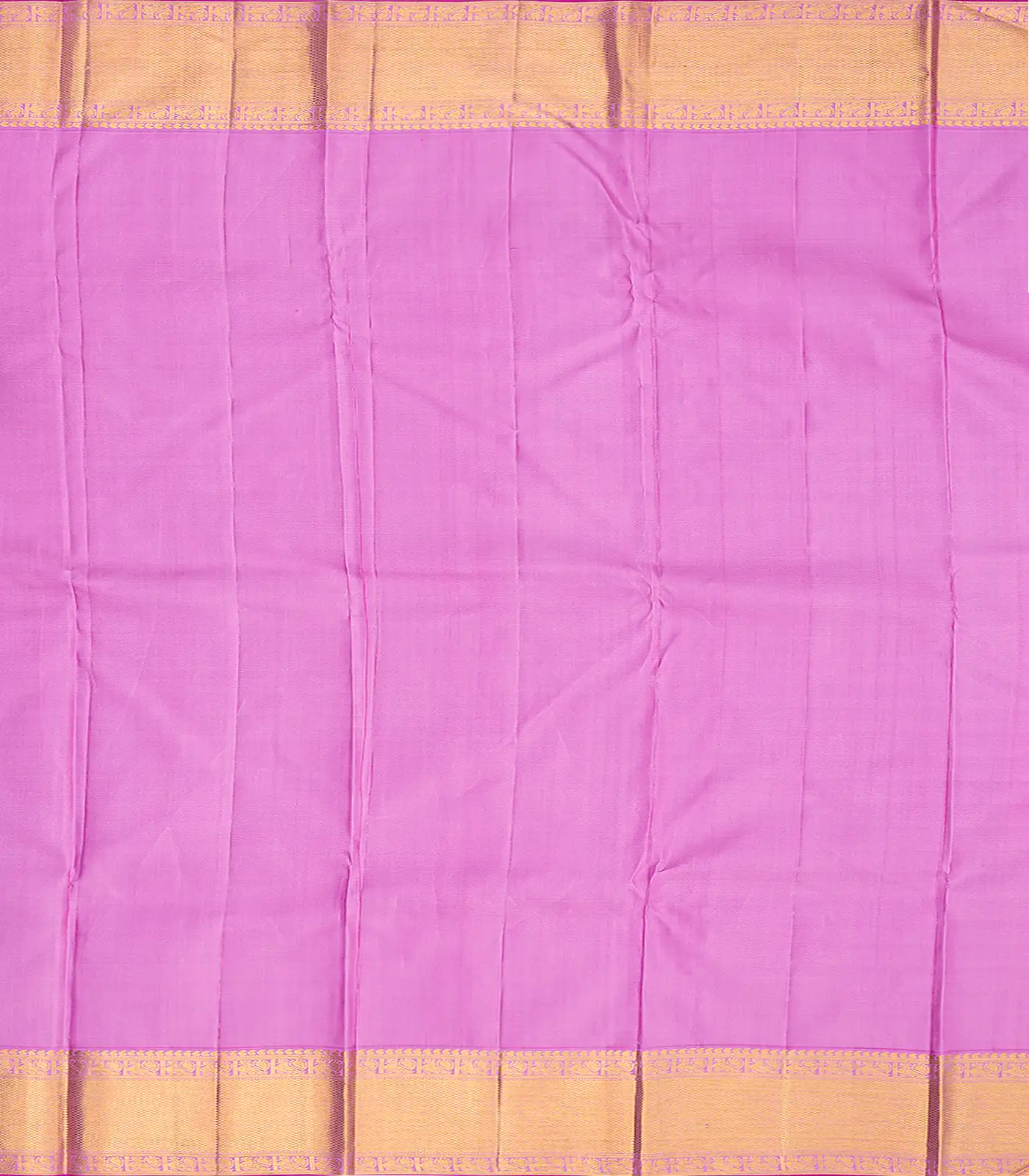 This handwoven kanchipuram korvai silk saree is filled with zari stripes in aquamarine body along with annam motifs in pink border and pallu