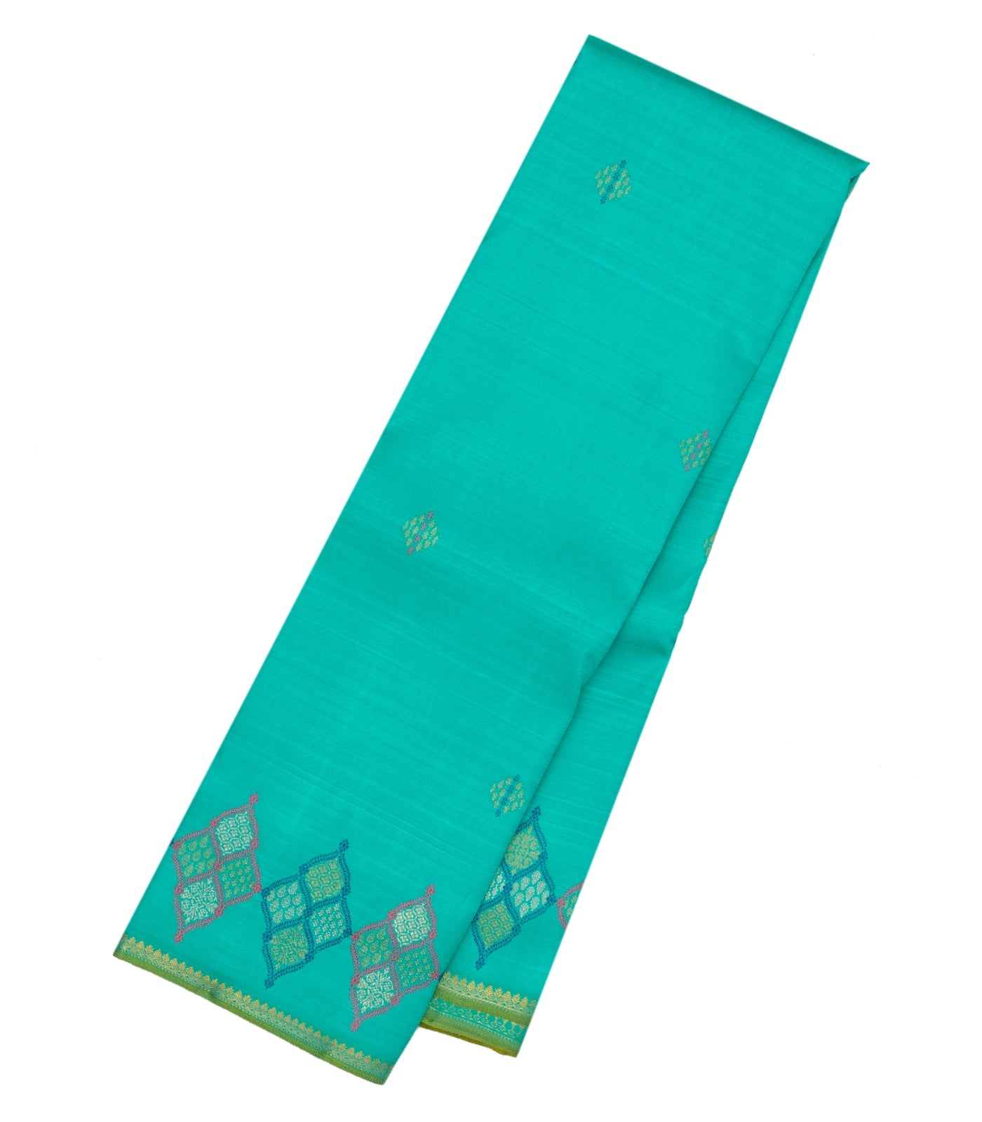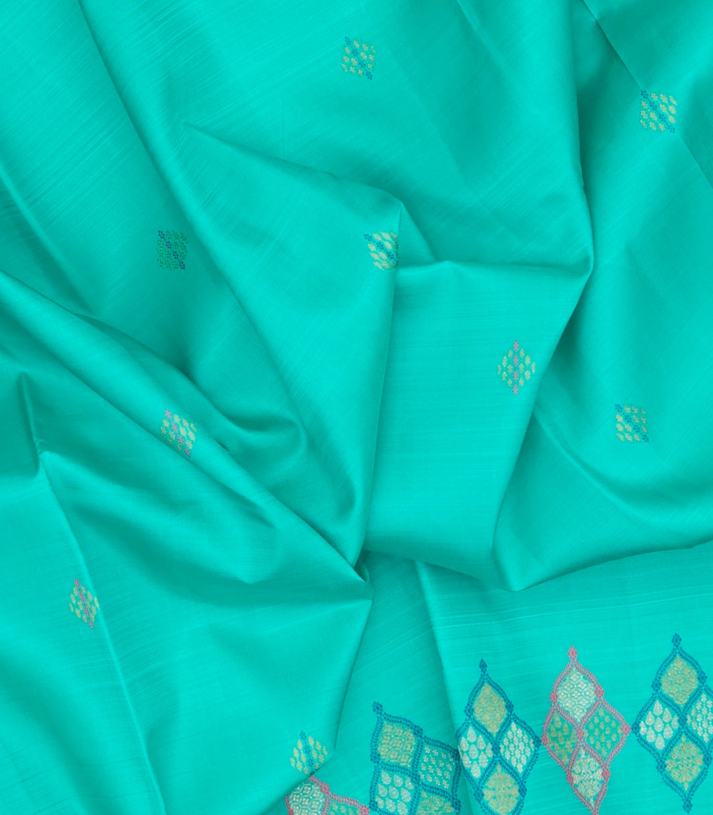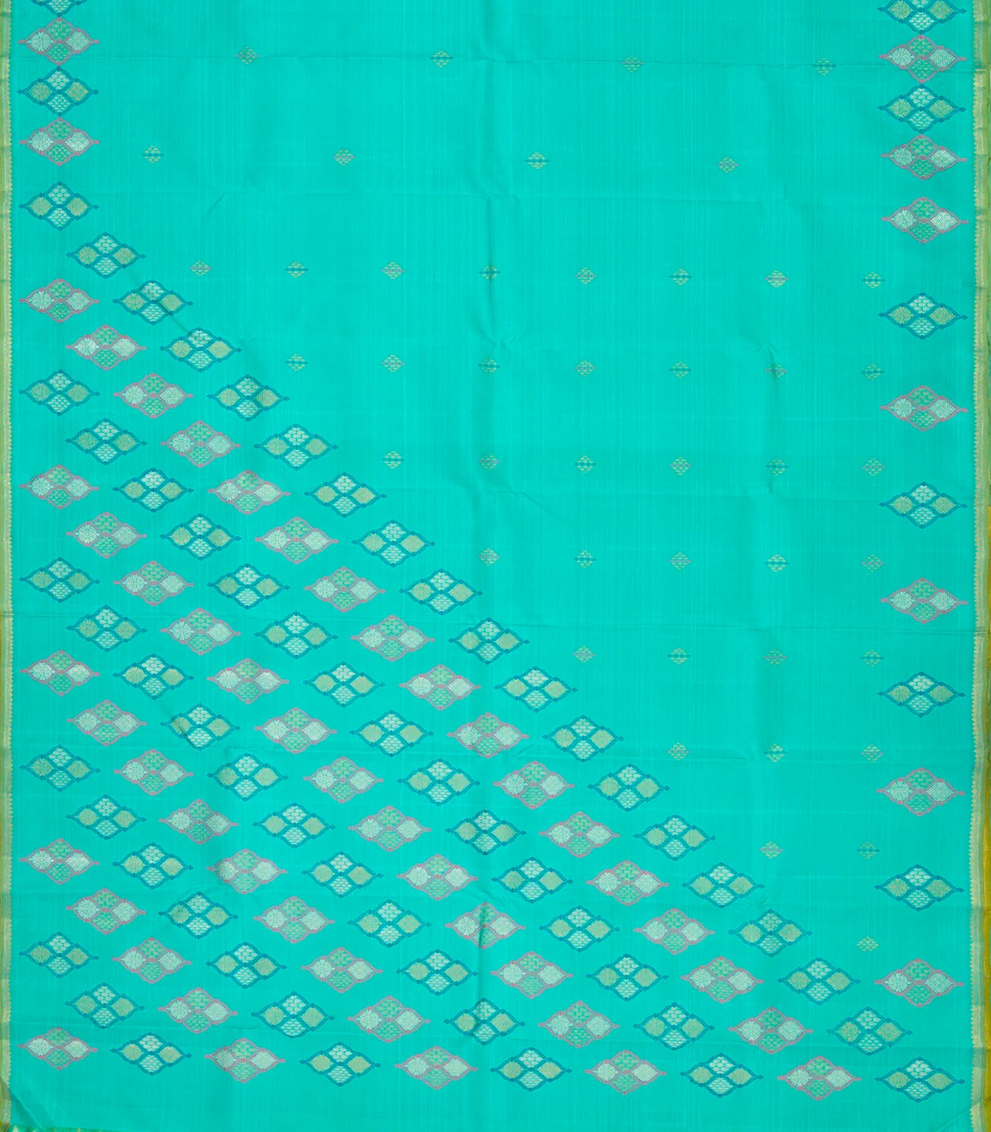 Aquamarine Handloom Kanchipuram Silk Saree With Meena Floral Pallu