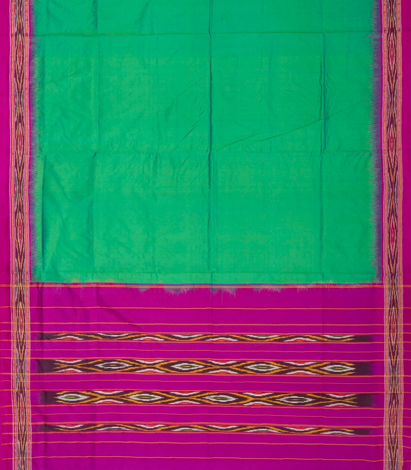 Aquamarine Handloom Pochampally Ikat Silk Saree With Tie & Dye Border-IK0405
