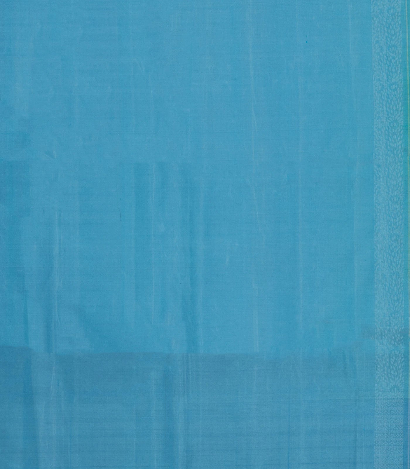 This handwoven soft silk saree is filled with floral motifs in aquamarine body along with contrast border and pallu