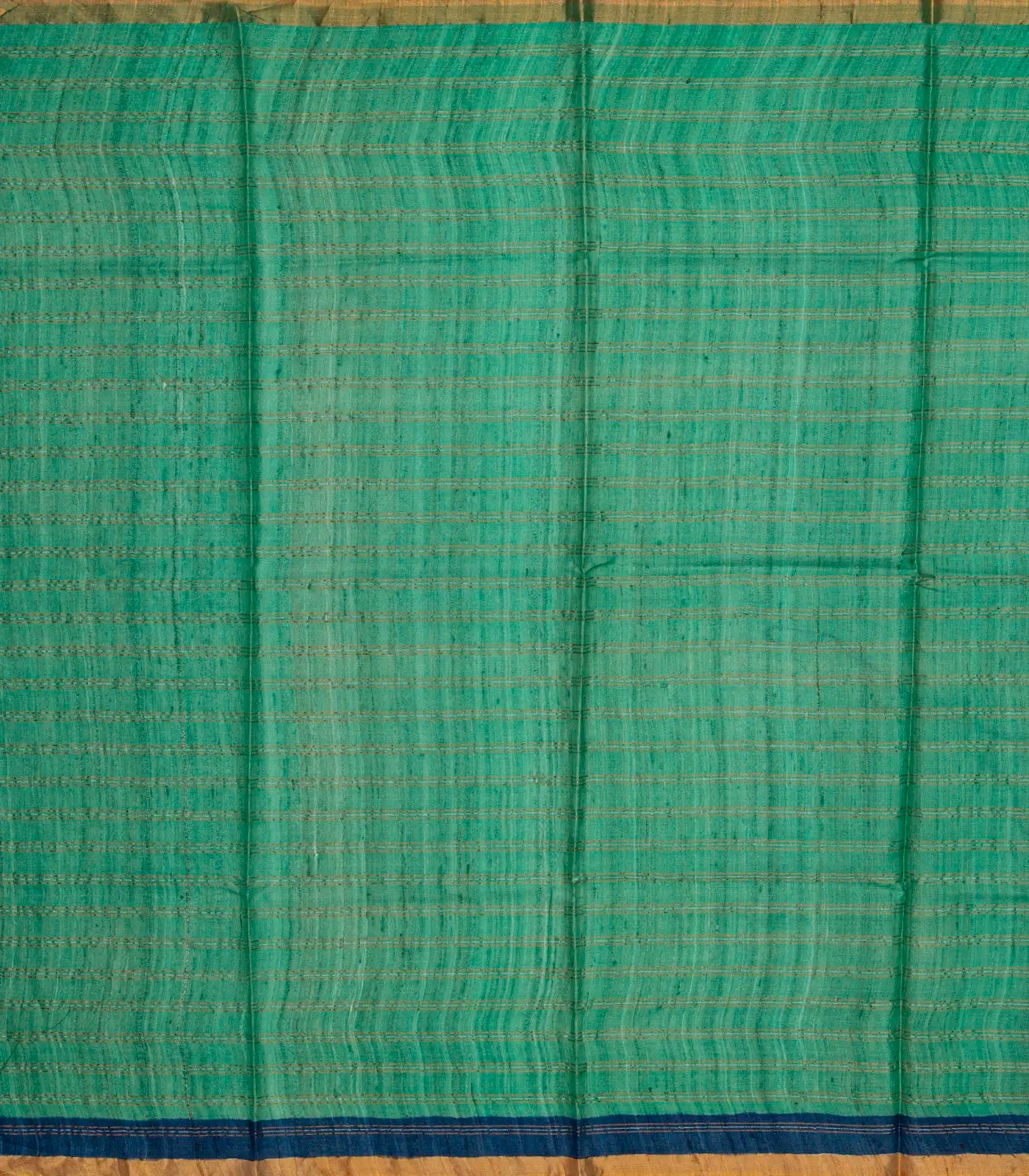 Aquamarine Handloom Tussar Silk Saree With Printed Floral Motifs