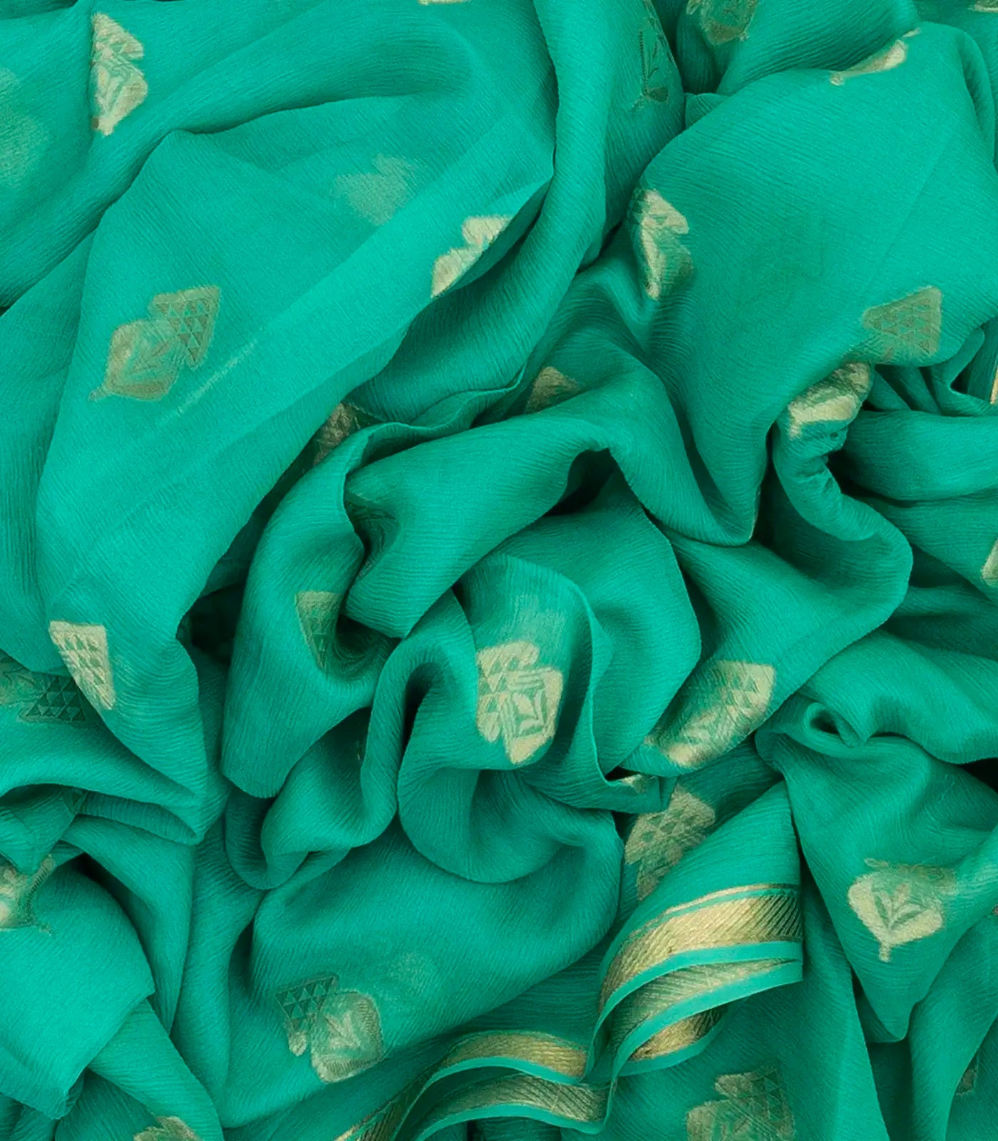 Aquamarine Mysore Georgette Silk Saree With Floral Buttas-MS2979