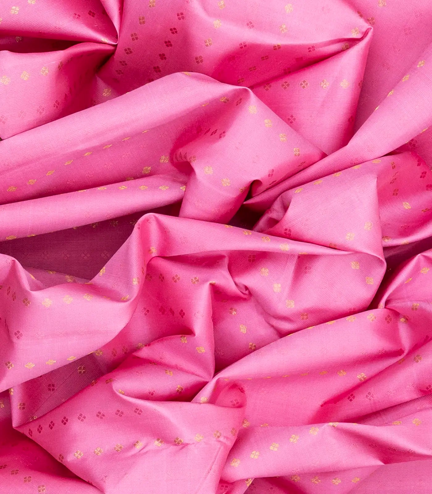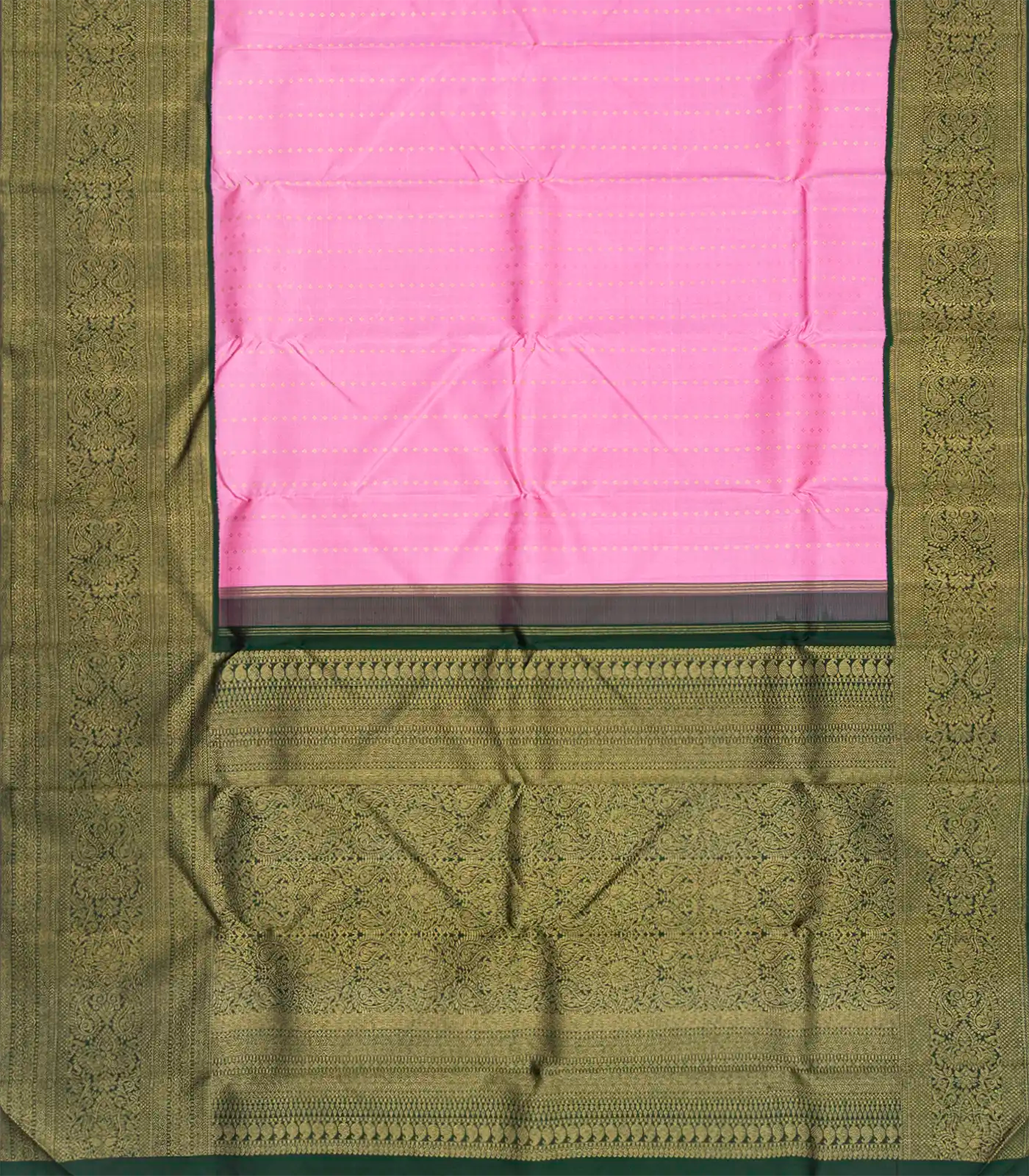 Baby Pink Handloom Kanchipuram Korvai Silk Saree With Green Border-Baby Pink