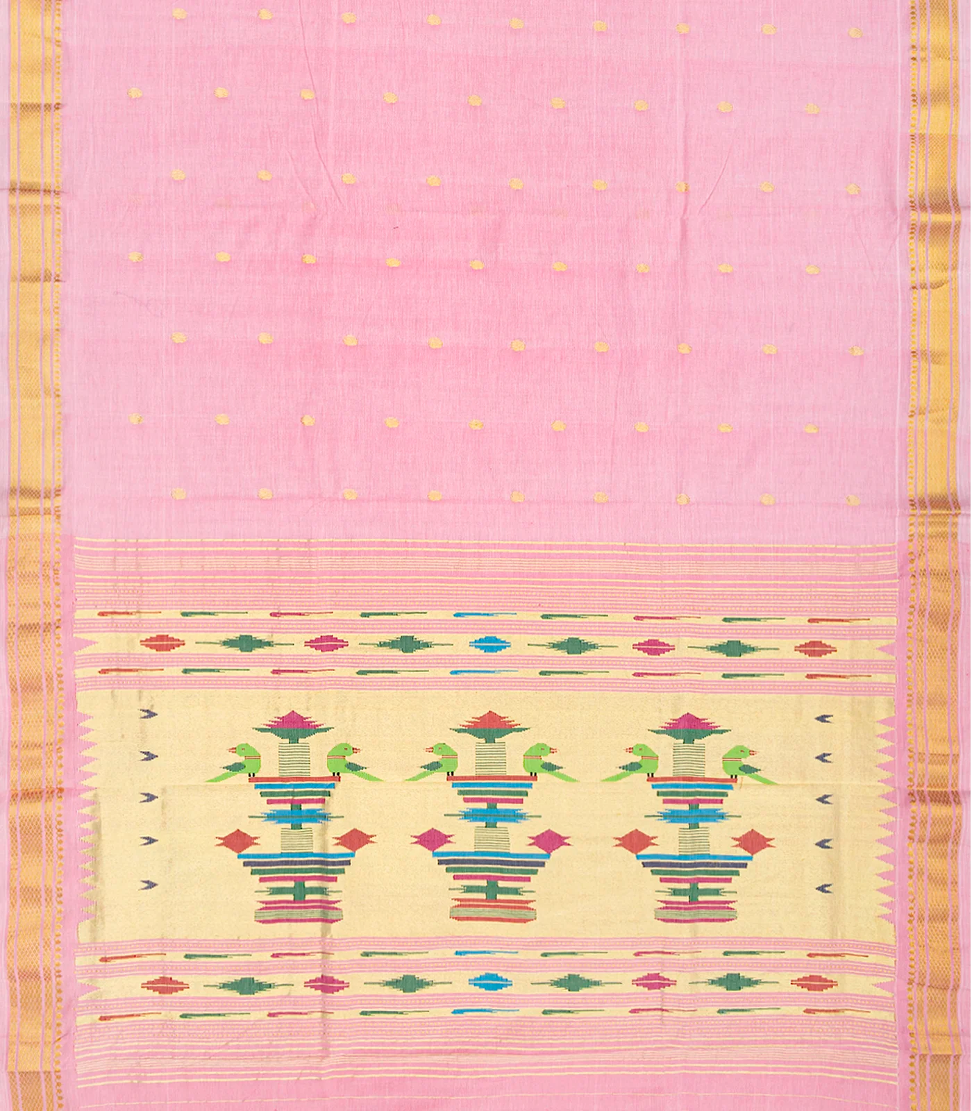 Baby Pink Handloom Paithani Cotton Saree With Mango Buttas-Baby Pink