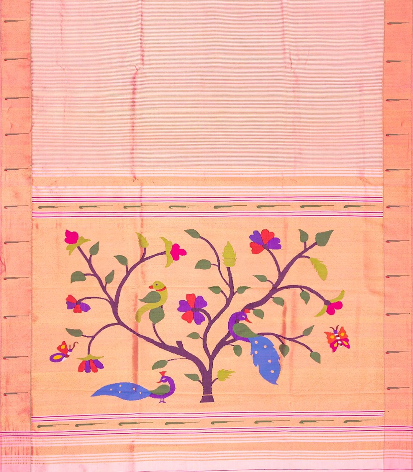 Baby Pink Handloom Paithani Silk Saree With Stripes-Baby Pink