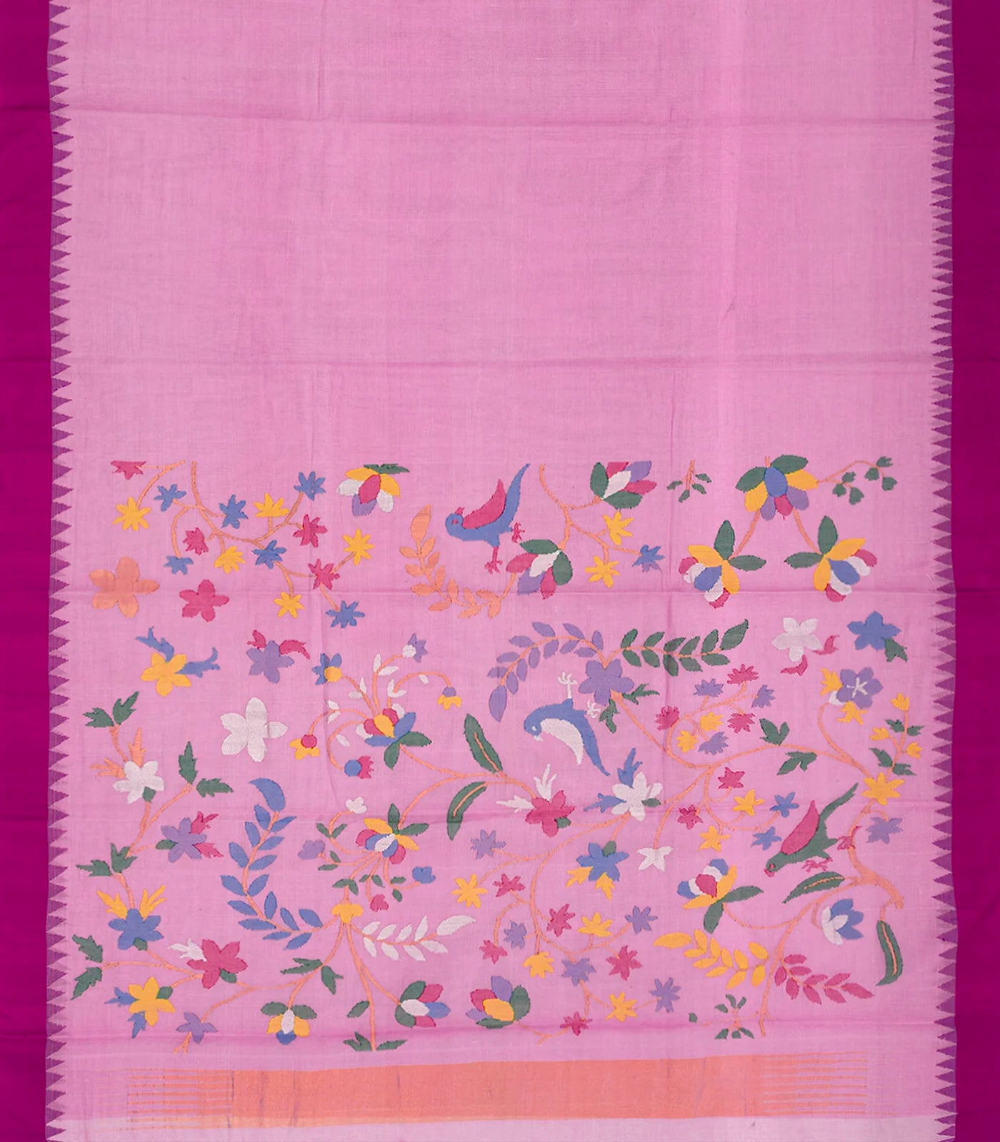 Baby Pink Handloom Uppada Khadi Cotton Saree-Baby Pink