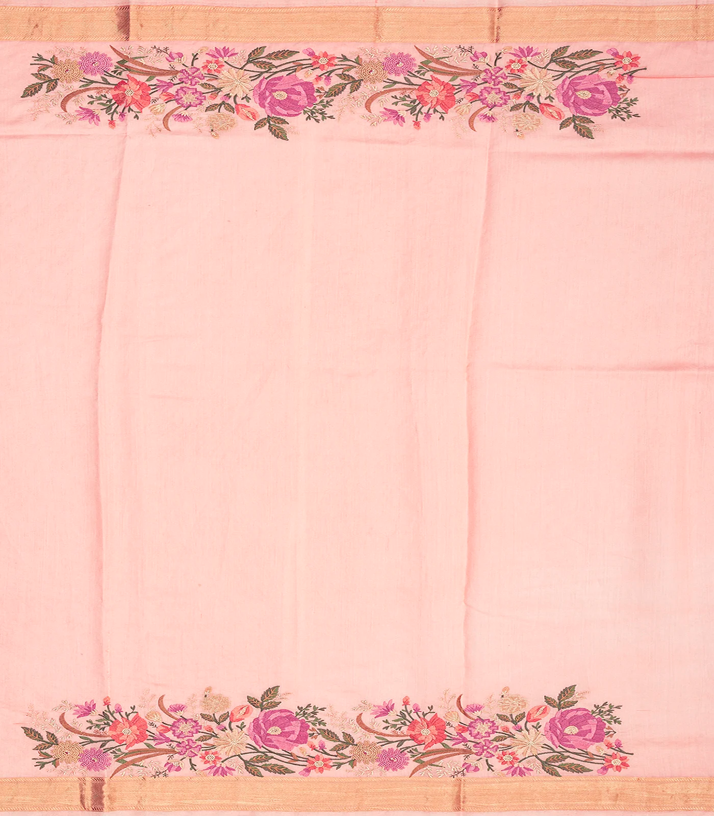 Baby Pink Raw Silk Saree With Embroidered Floral Motifs-Baby Pink