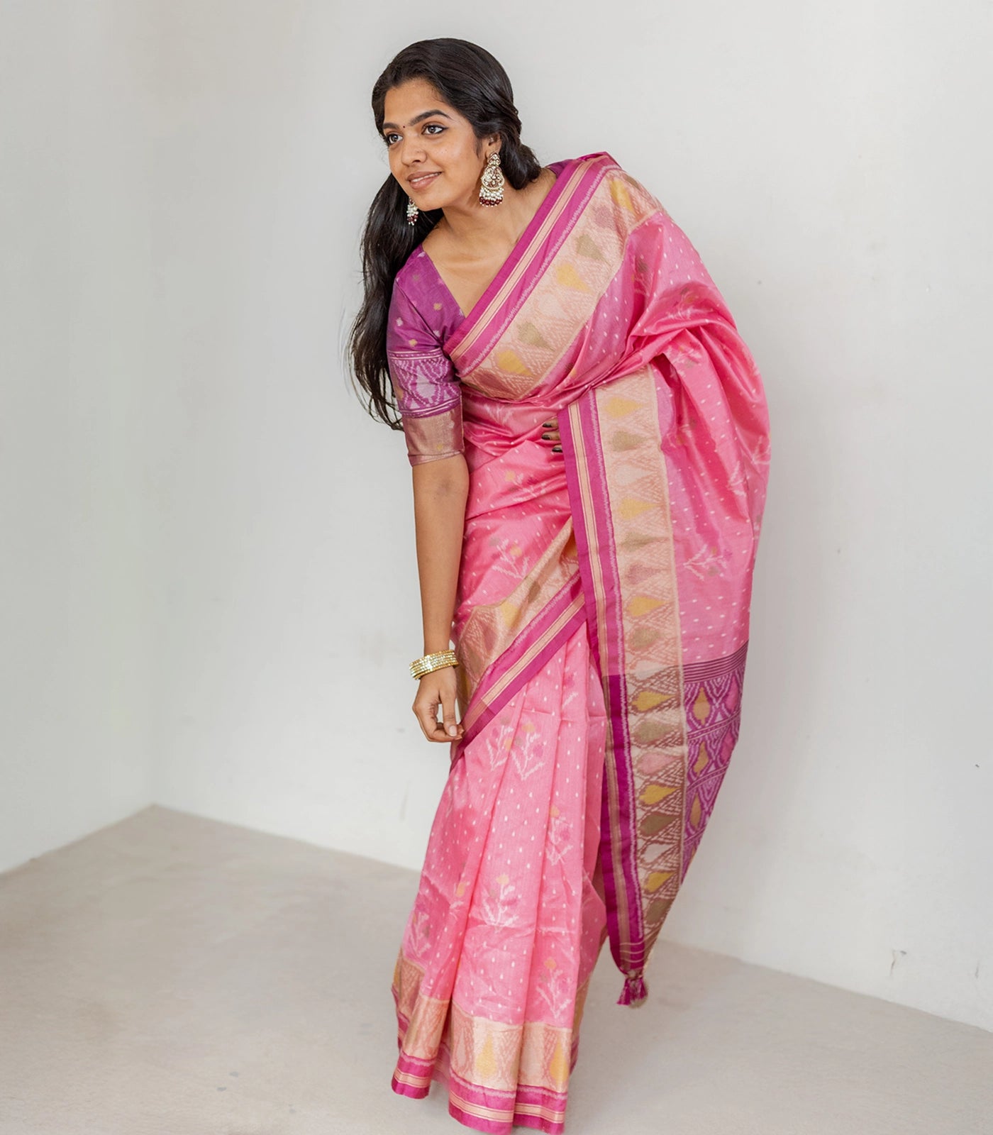 Baby Pink Woven Art Tussar Silk Saree With Printed Floral Motifs-BL3919