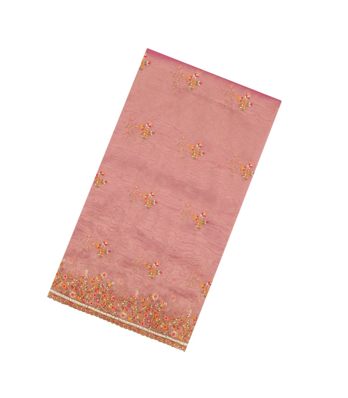 Baby Pink Woven Blended Tissue Saree With Embroidered Meena Floral Motifs-BL4864