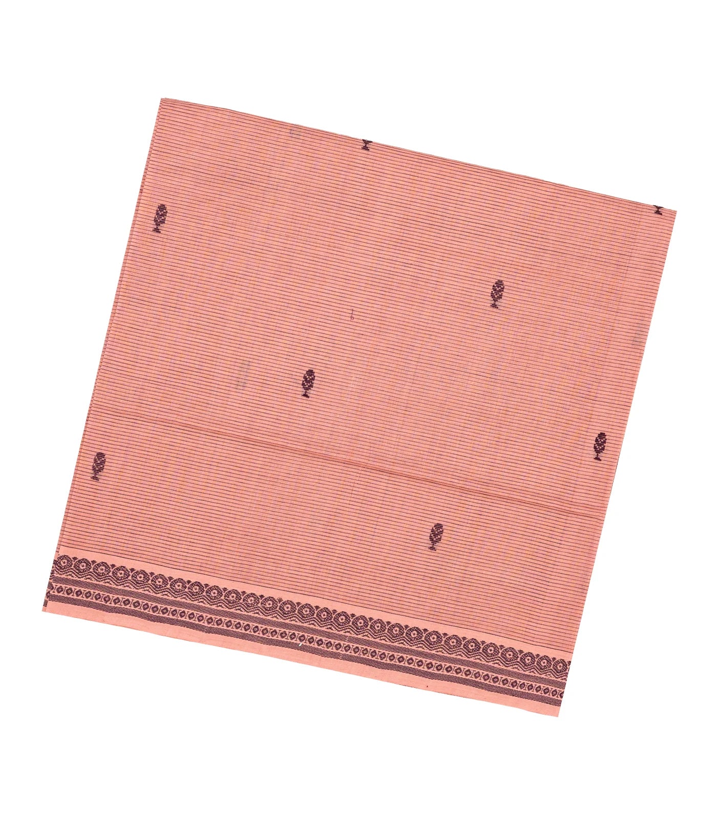 This woven kadapa cotton saree is filled with stripes & buttas in baby pink body along with border and pallu