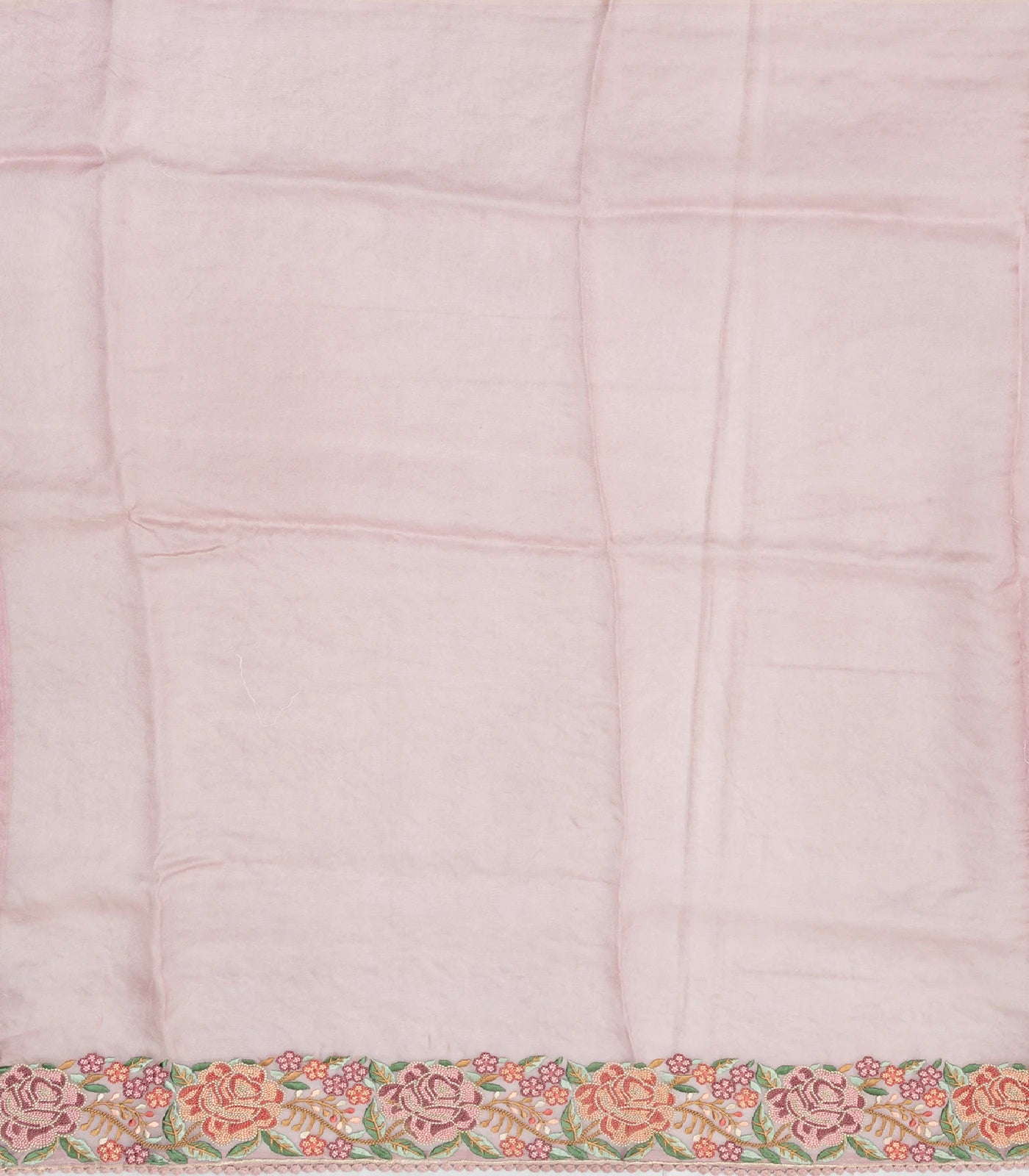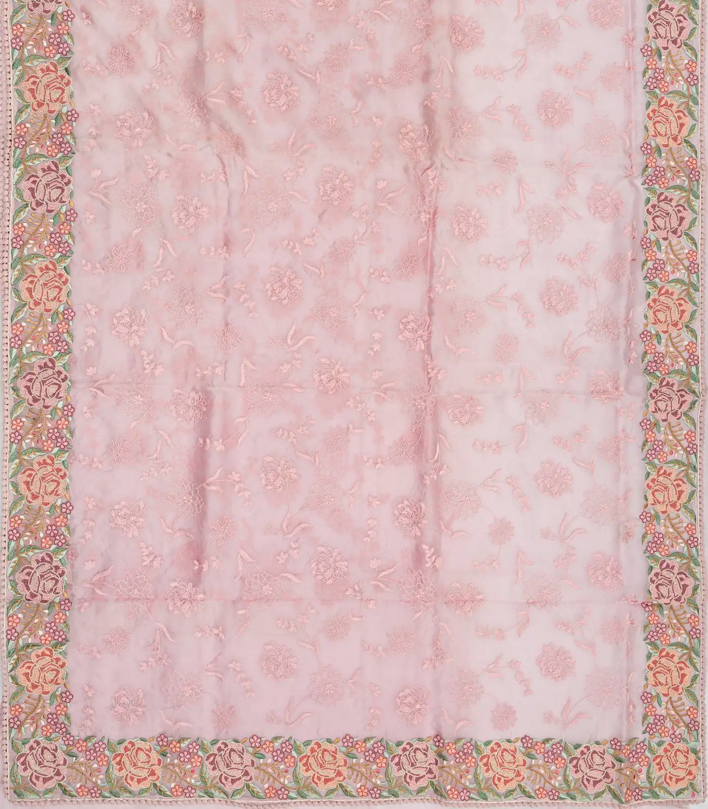 Baby Pink Woven Organza Saree With Embroidered Floral Vine Motifs