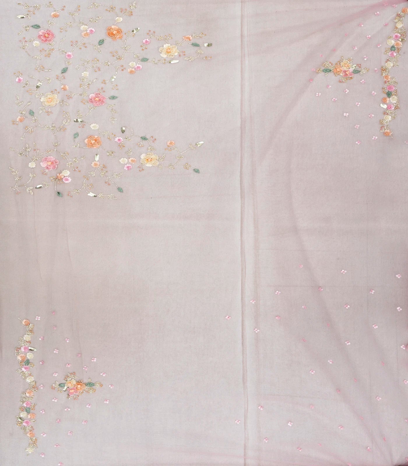 Baby Pink Woven Organza Saree With Hand Embroidered Floral Motifs-EN1695