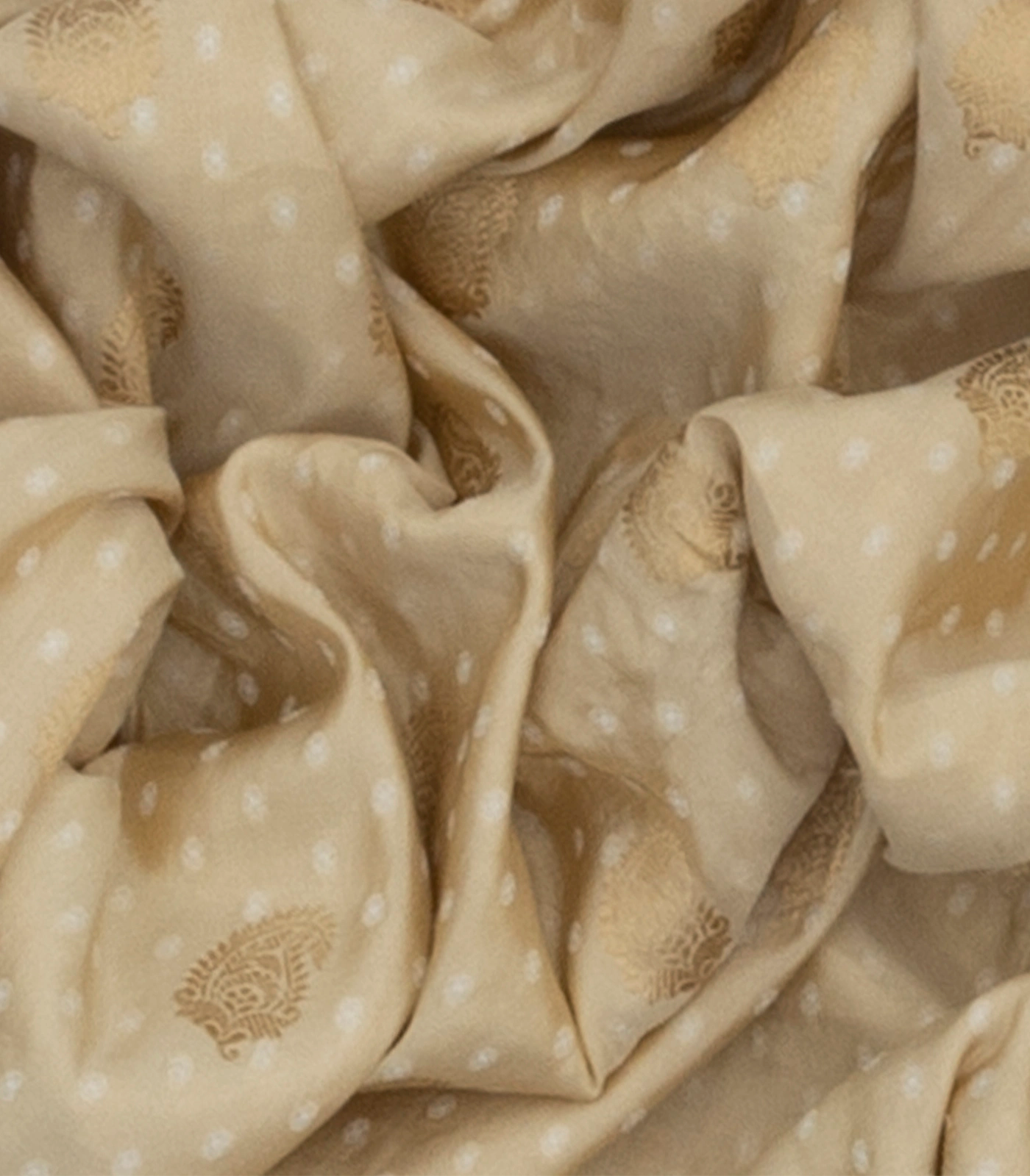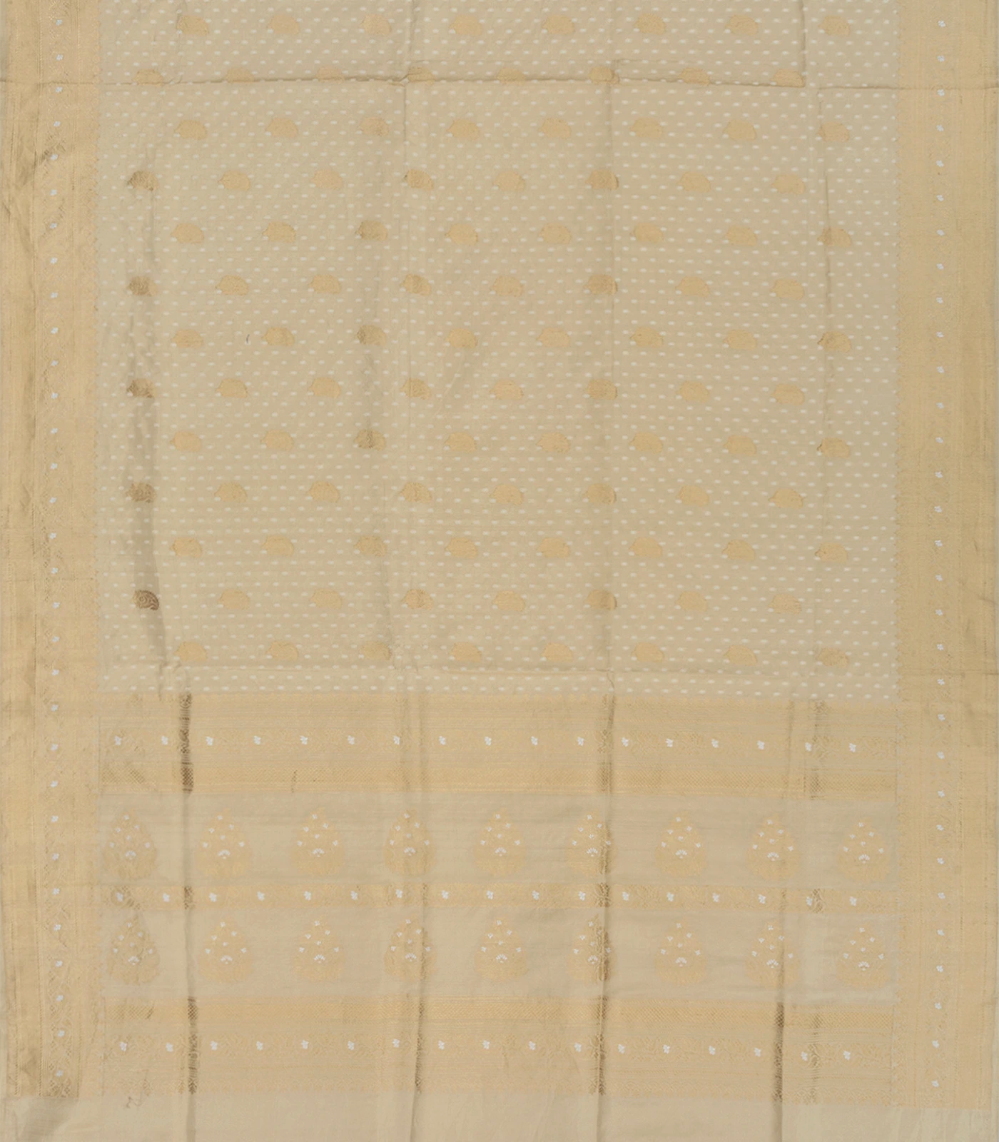 Beige Handloom Banarasi Silk Saree With Paisley Butta -Beige