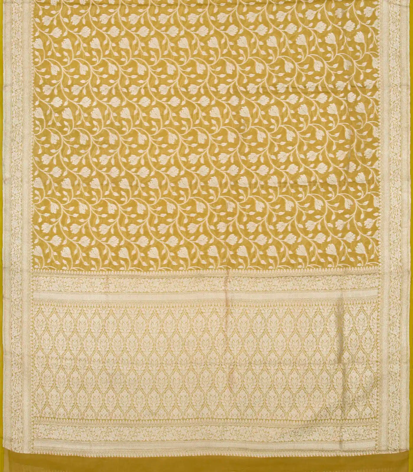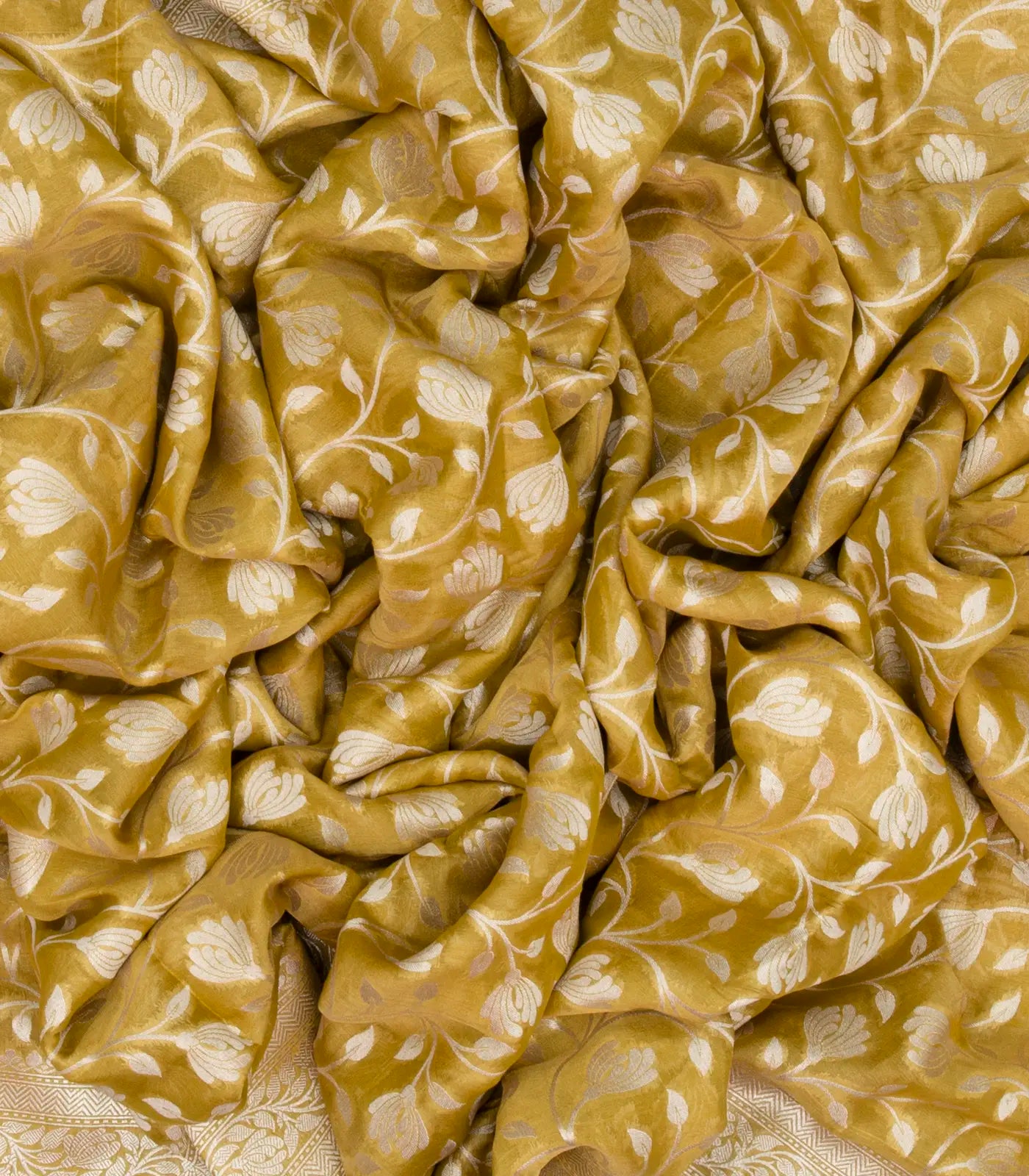 Beige Handloom Banarasi Tissue Saree With Floral Motifs-BE1706