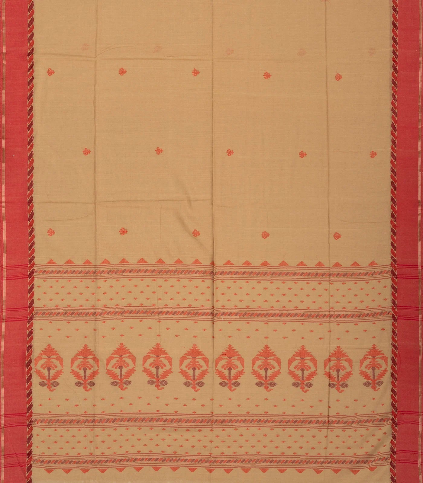 Beige Handloom Bengal Cotton Saree With Floral Buttas-BG1203