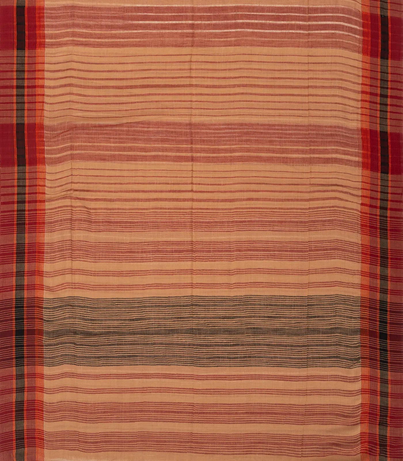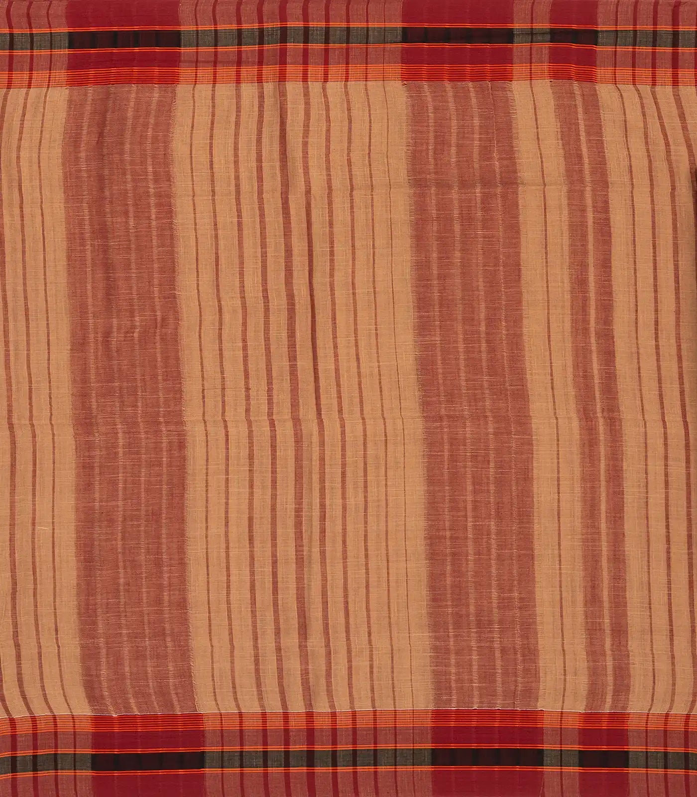 Beige Handloom Bengal Cotton Saree With Stripes-BG1223