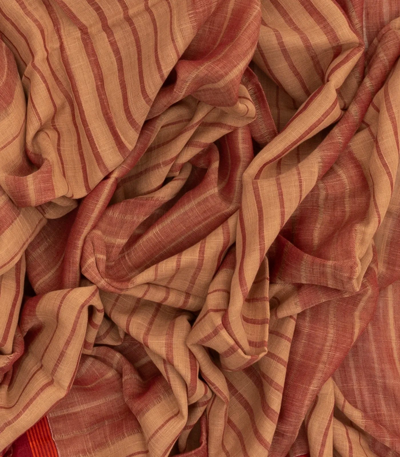 This handwoven bengal cotton saree with stripes in beige body along with border and pallu