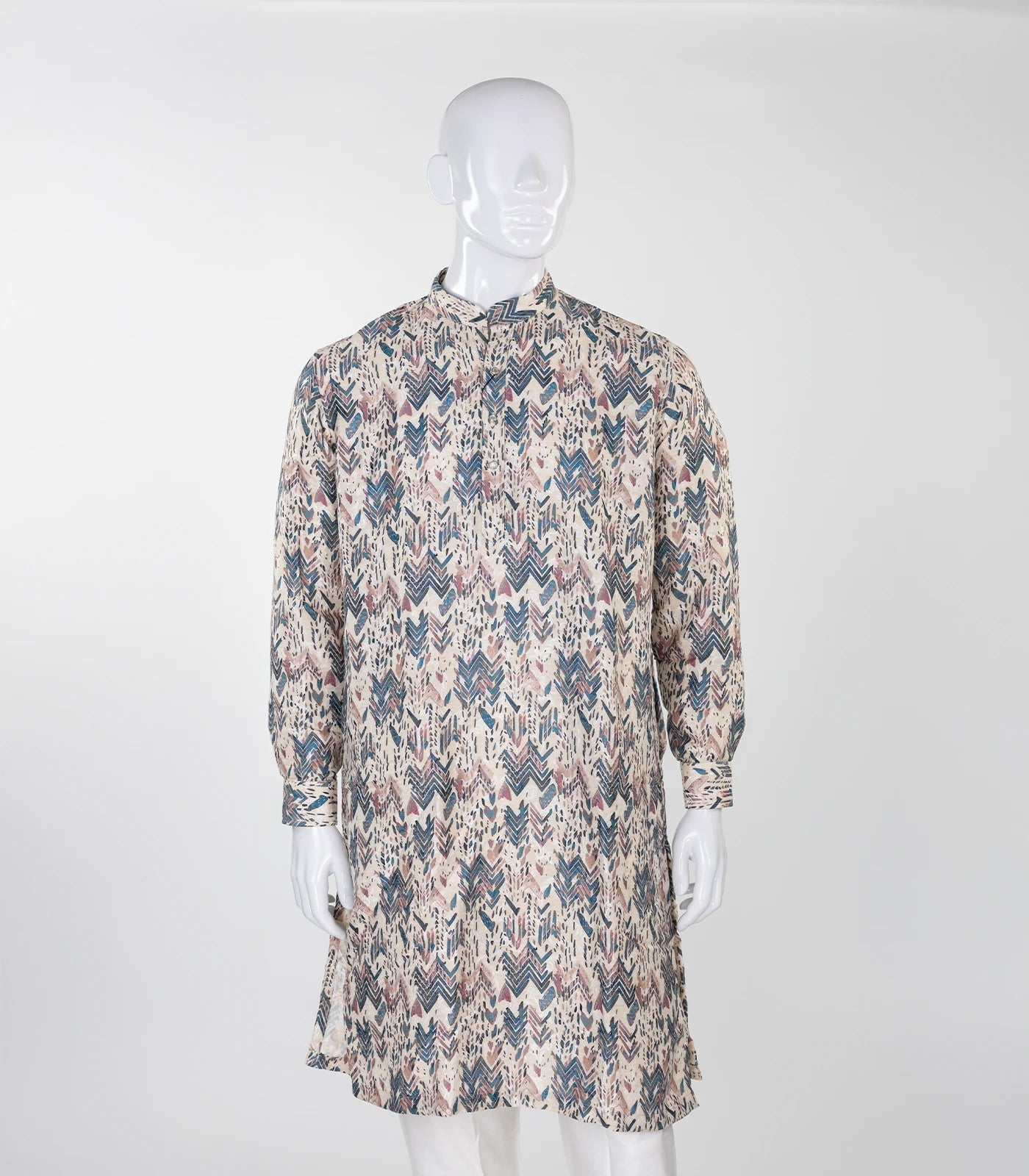 Beige Mid Length Kurta with zig zag print -EW1104