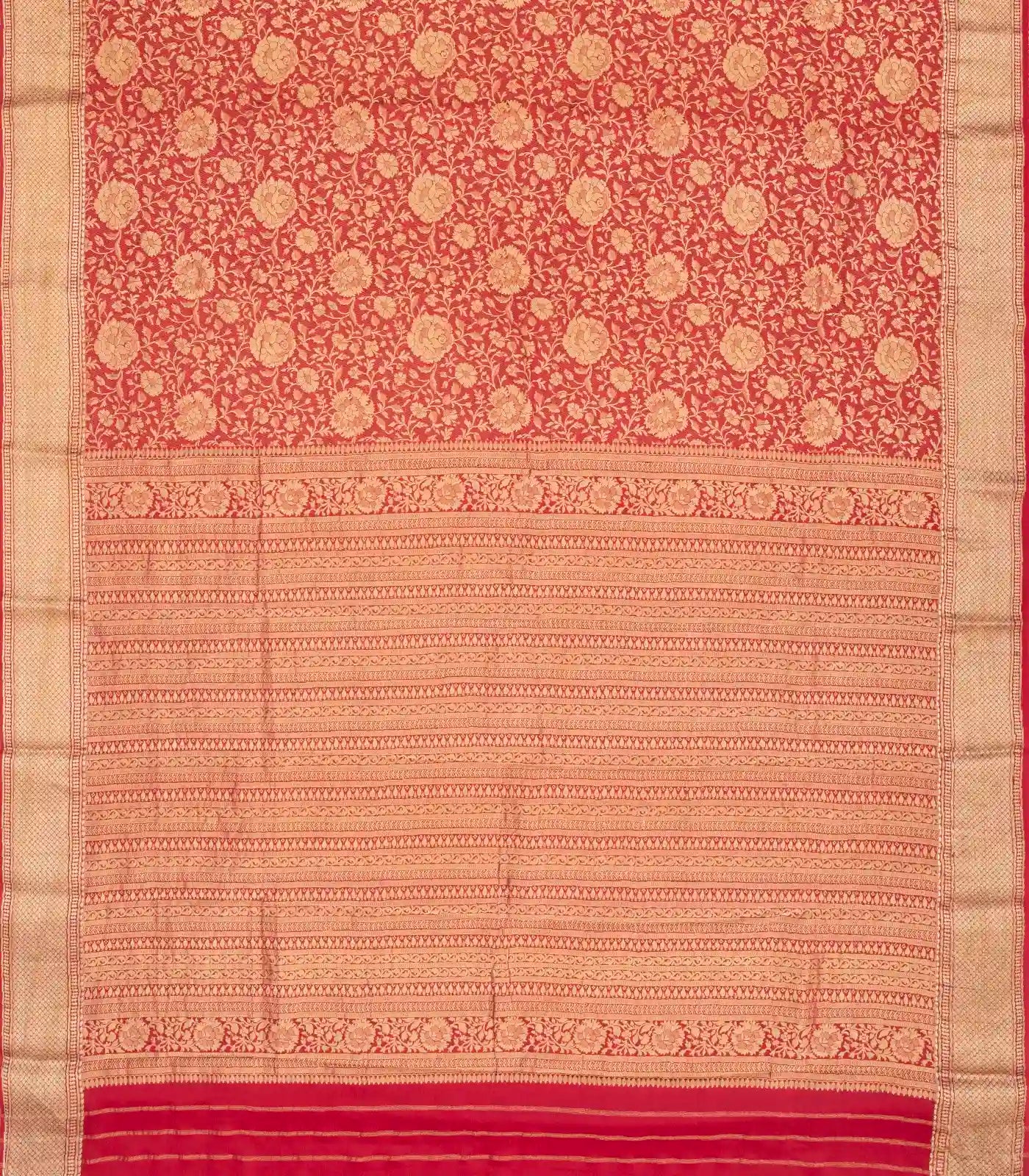 This woven mysore crepe silk saree is filled with floral vine motifs in dark peach body along with zari border and pallu