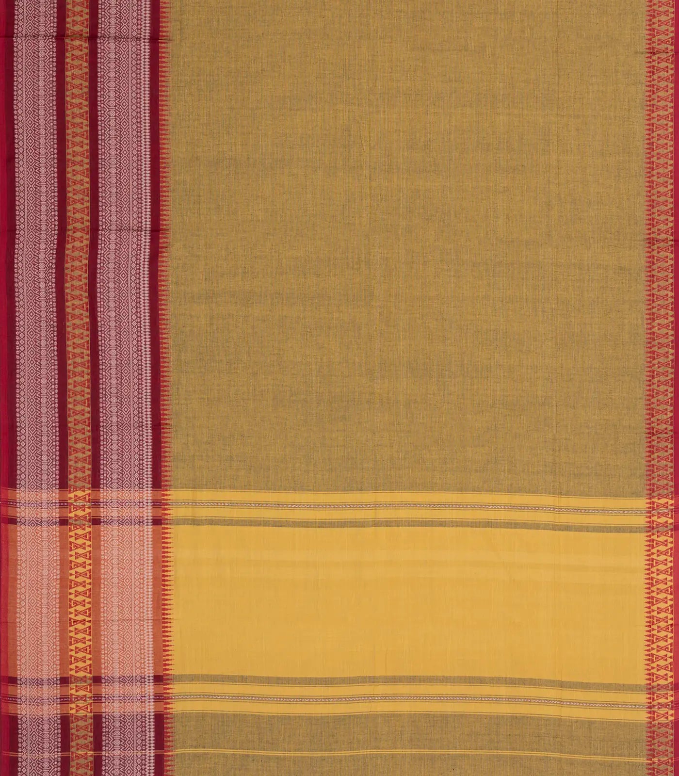 Beige Woven Bengal Cotton Saree With Contrast Border-BG1898