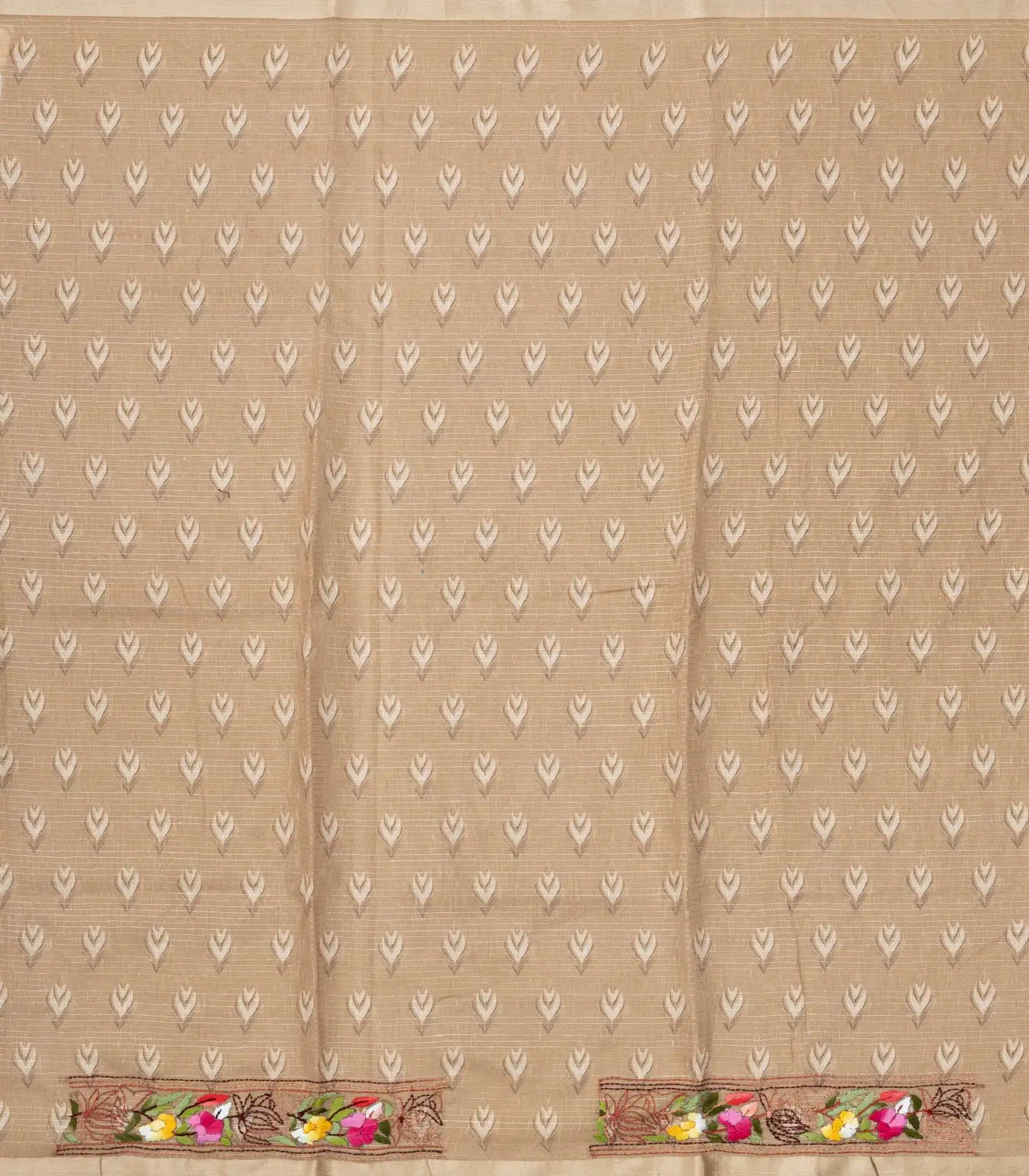 Beige Woven Blended tussar Saree With Embroidered Floral Motifs-BL3861