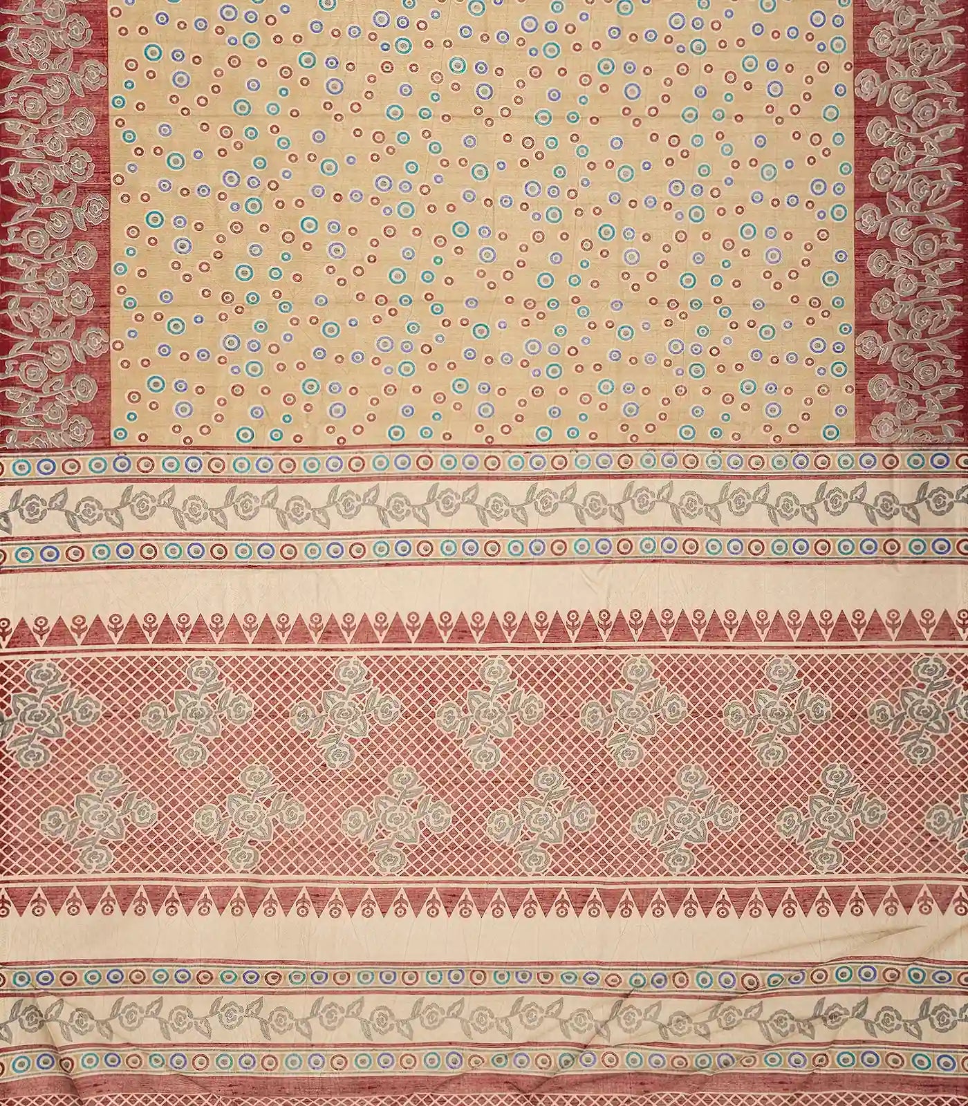 Beige Woven Synthetic Crackle Saree With Printed Floral Motifs