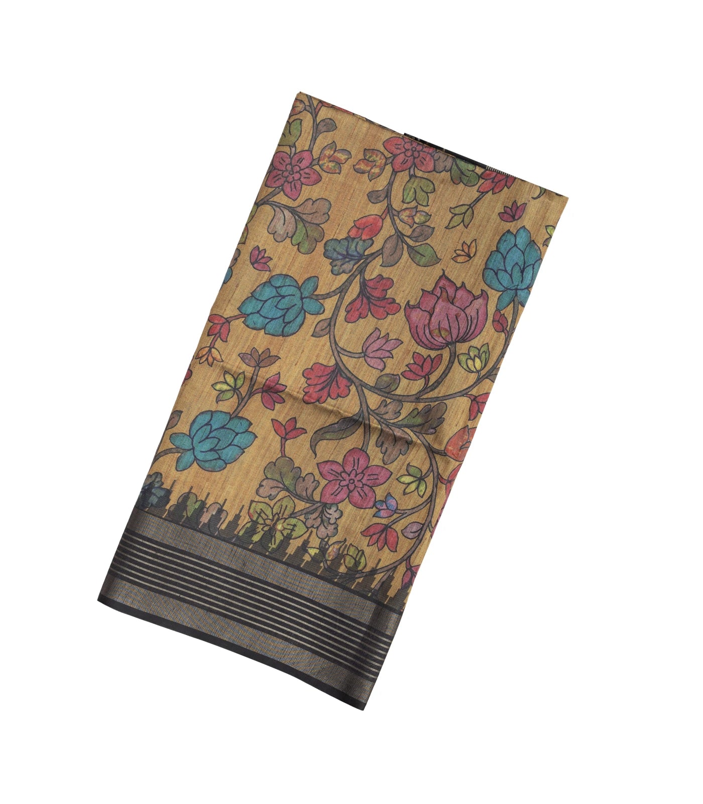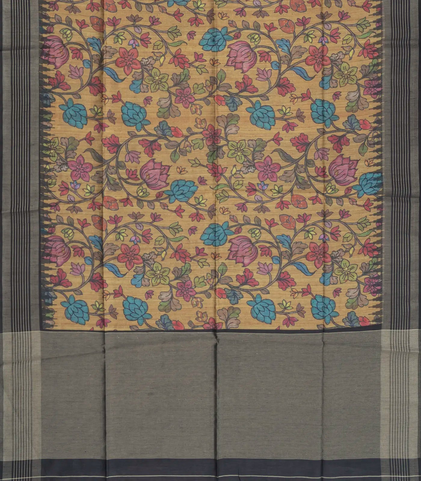 Beige Woven Synthetic Dupion Saree With Printed Kalamkari Motifs-BL4333