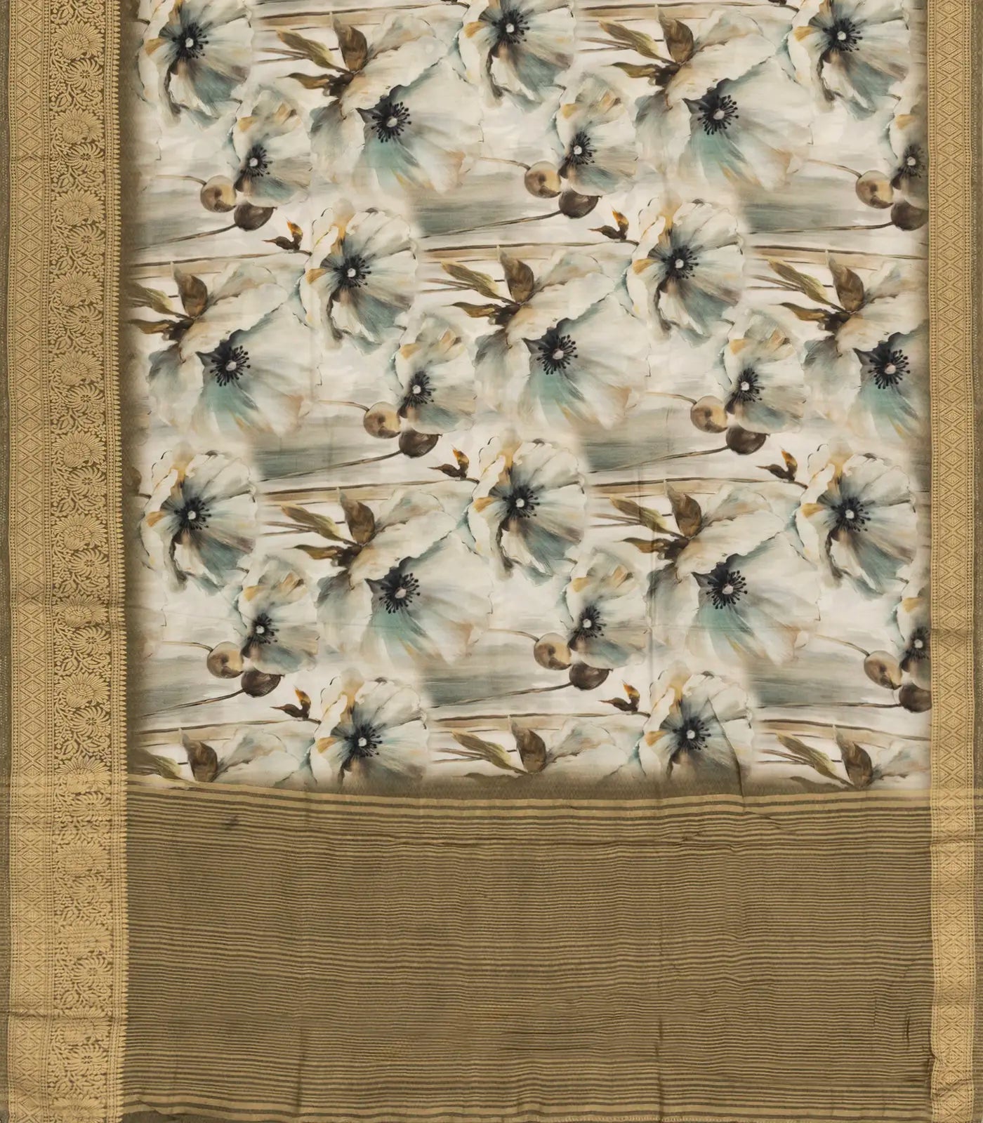 Beige Woven Synthetic Viscose Saree With Printed Floral Motifs-BL4925