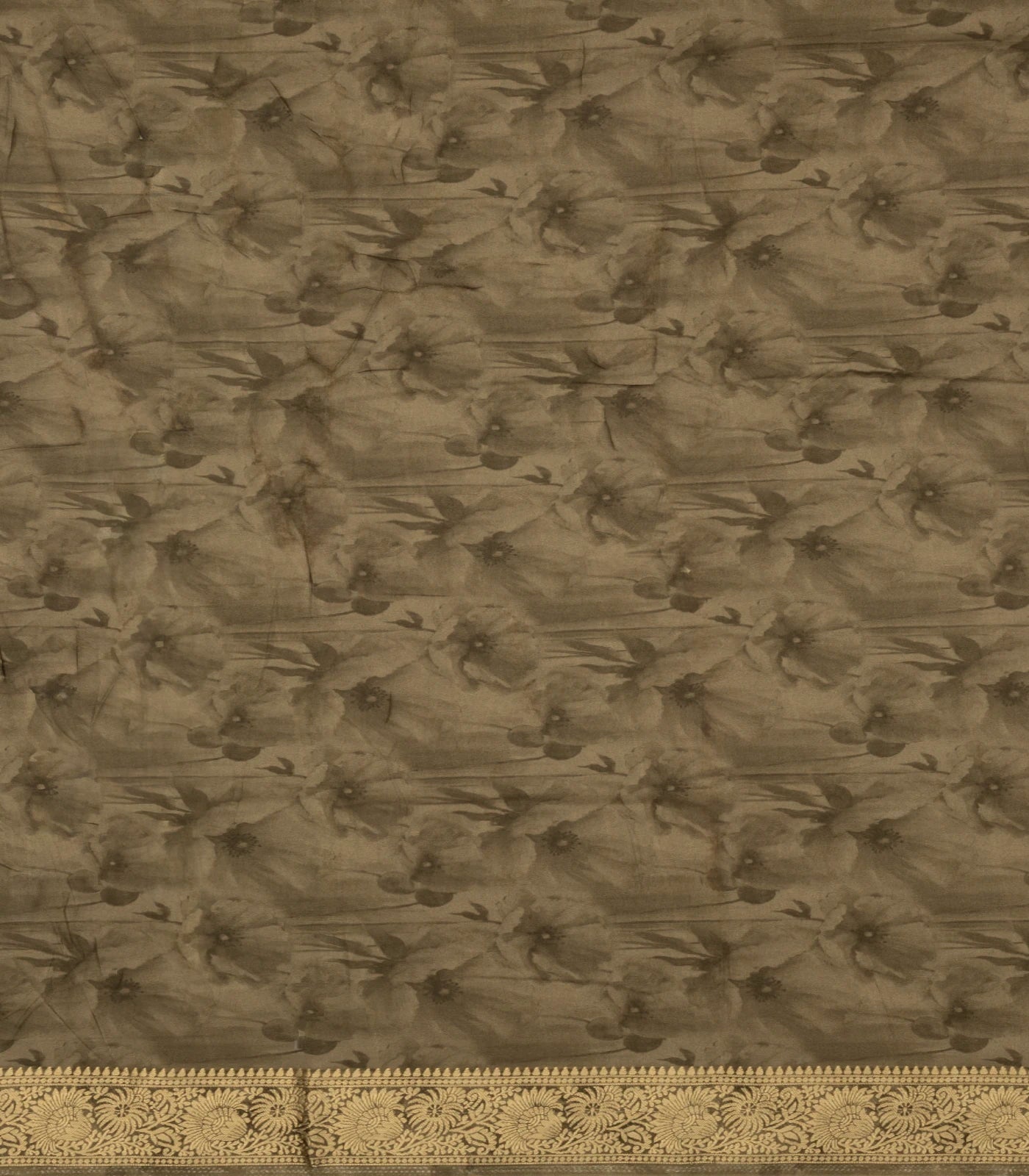 This woven synthetic viscose saree is filled with printed floral motifs in beige body along with border and pallu