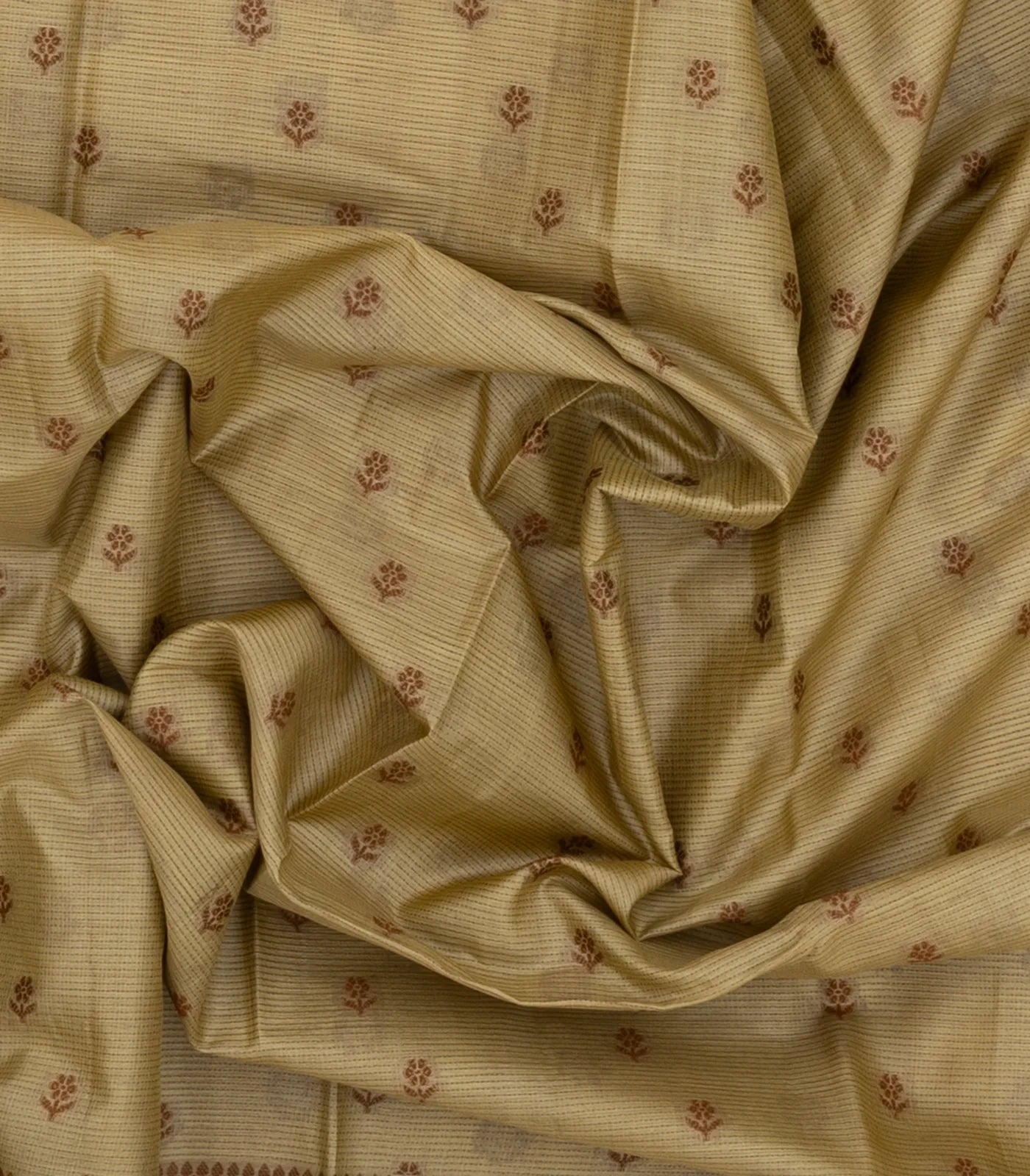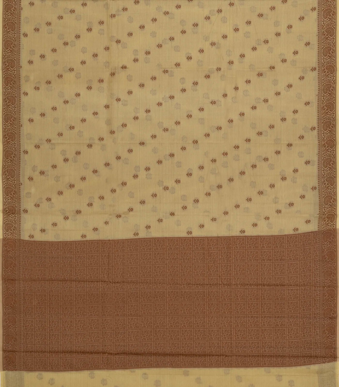 Beige Woven Tussar Silk Saree With Floral Motifs-TU3137