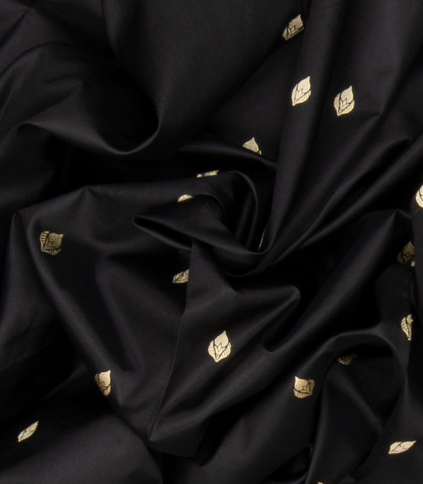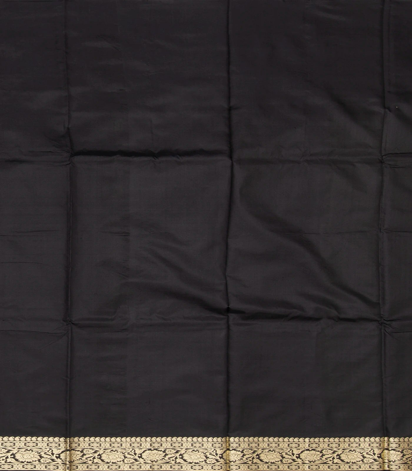 Black Banarasi Silk Saree With Floral Motifs-Black
