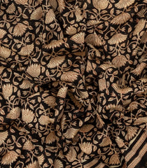 Black Chanderi Cotton Saree Printed With Floral Vine Motifs