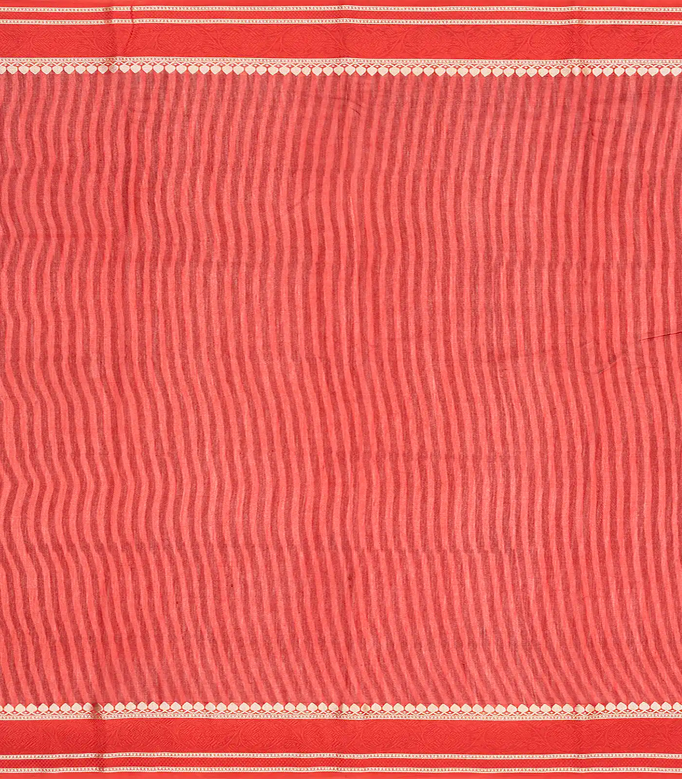 This woven chanderi cotton saree is filled with printed floral motifs in black body along with contrast red border and pallu