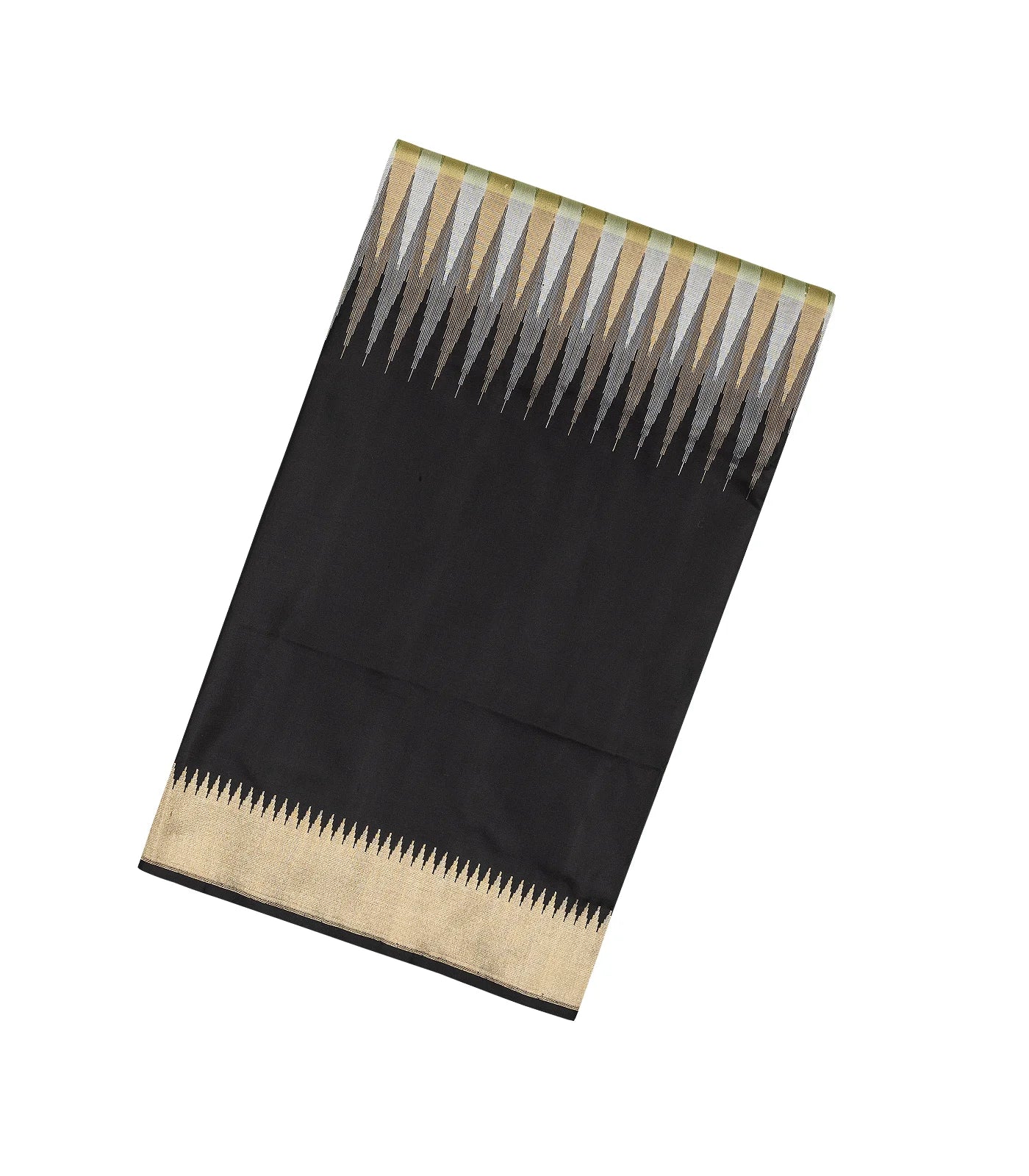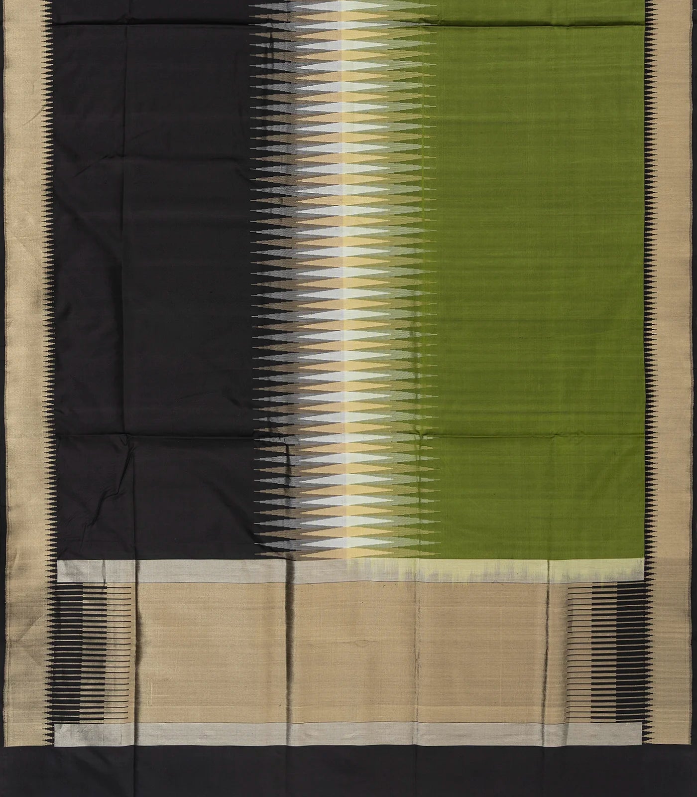 Black & Green Handloom Half & Half Banarasi Silk Saree With Temple Border-BE1366