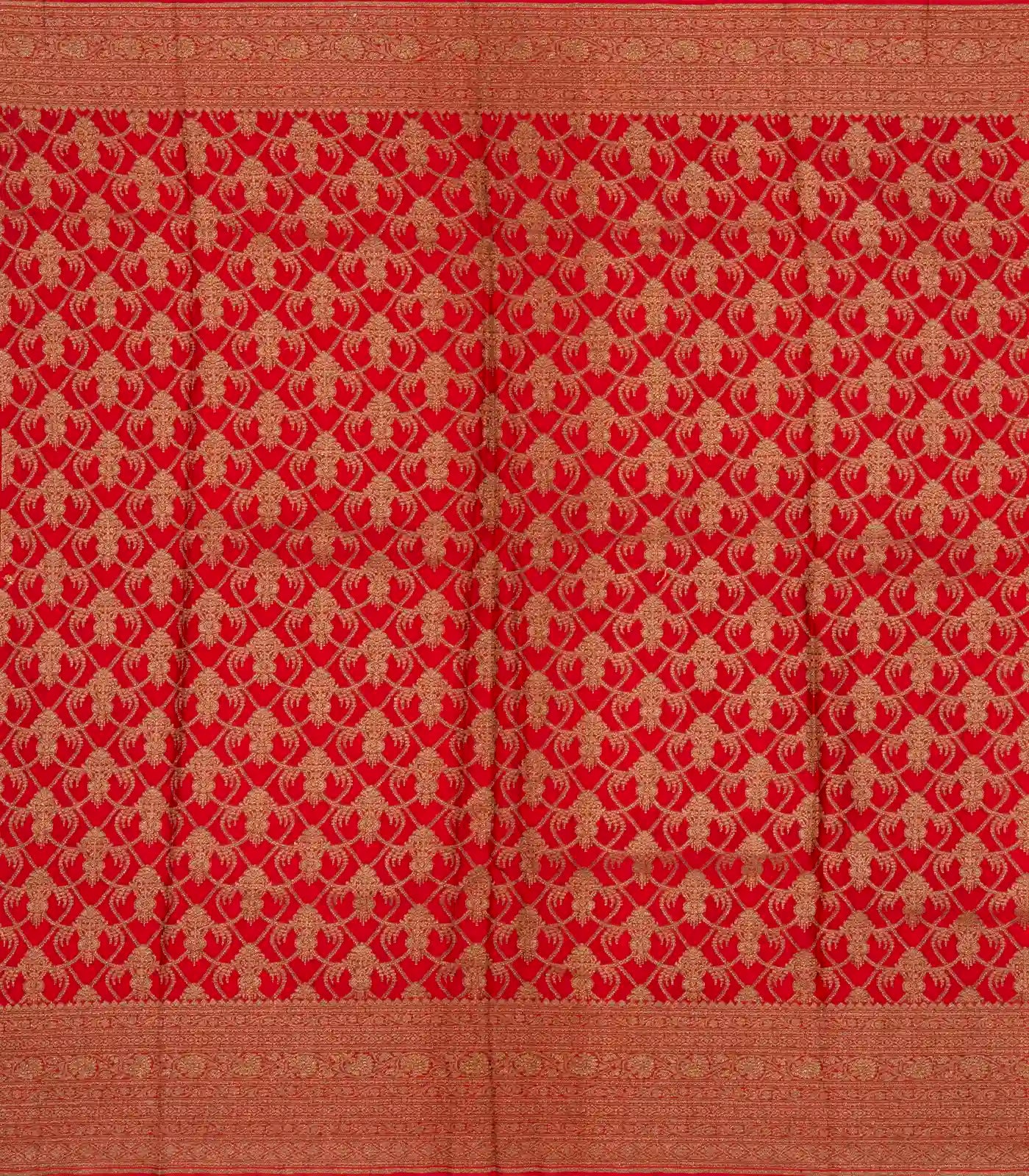 This handwoven banarasi khadi georgette silk saree is filled with floral motifs in black body along with contrast border and pallu
