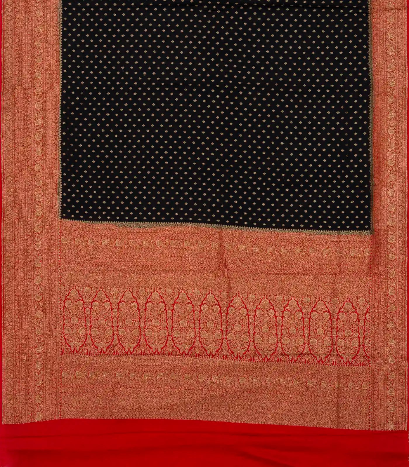 Black Handloom Banarasi Khadi Georgette Silk Saree With Floral Motifs-BE1494
