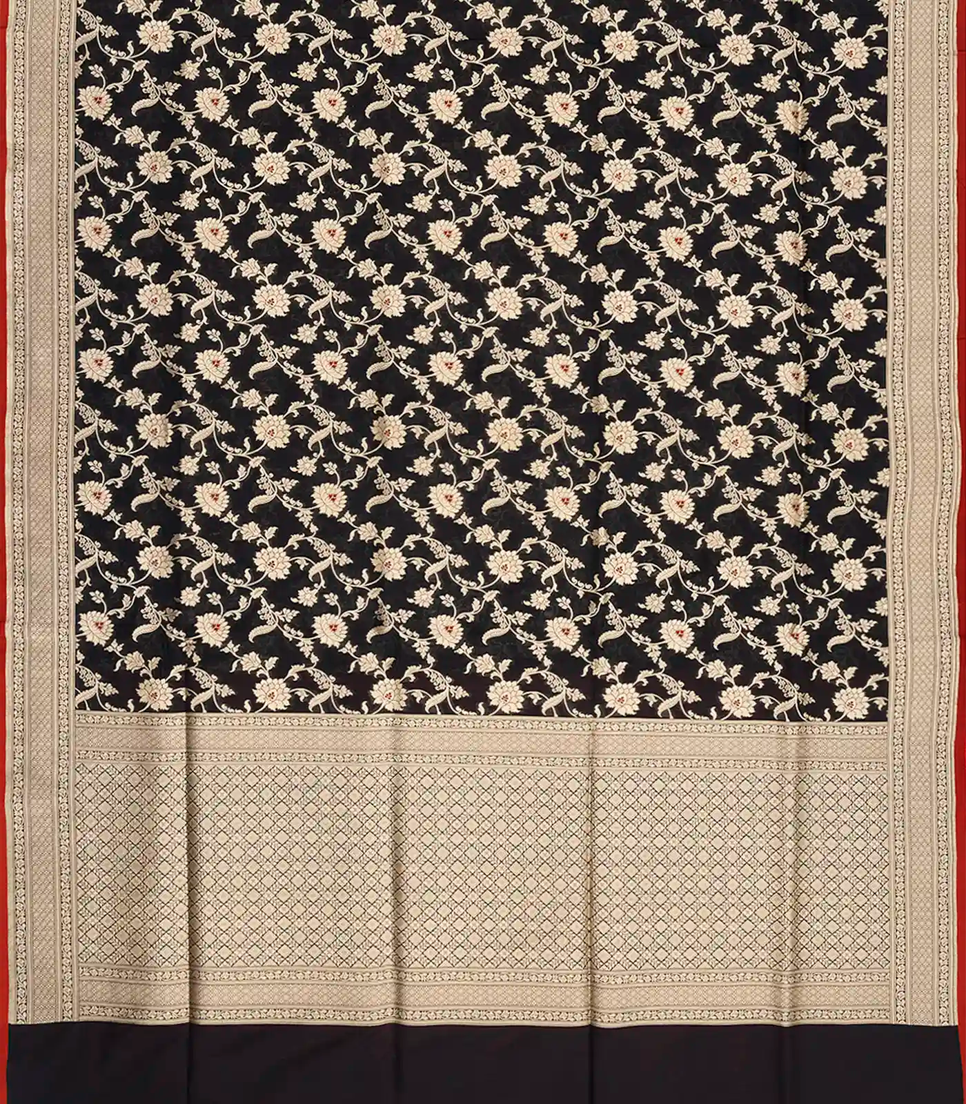 Black Handloom Banarasi Silk Saree With Floral Vine Motifs-Black