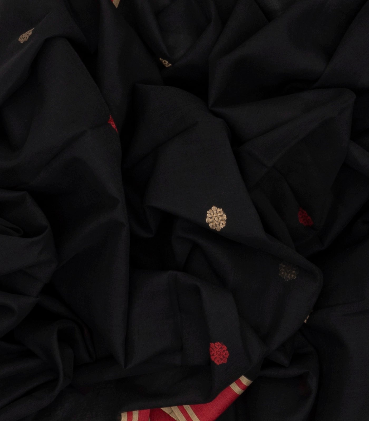 Black Handloom Bengal Cotton Saree With Buttas & Floral Pallu-BG1356