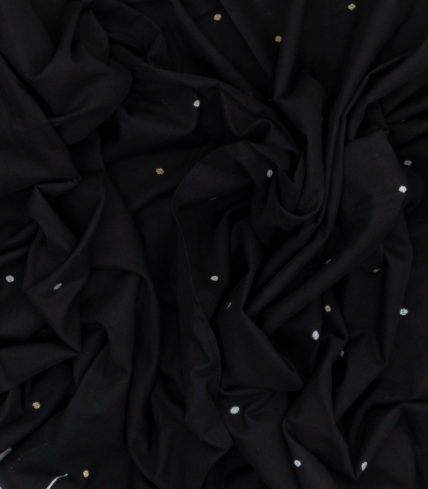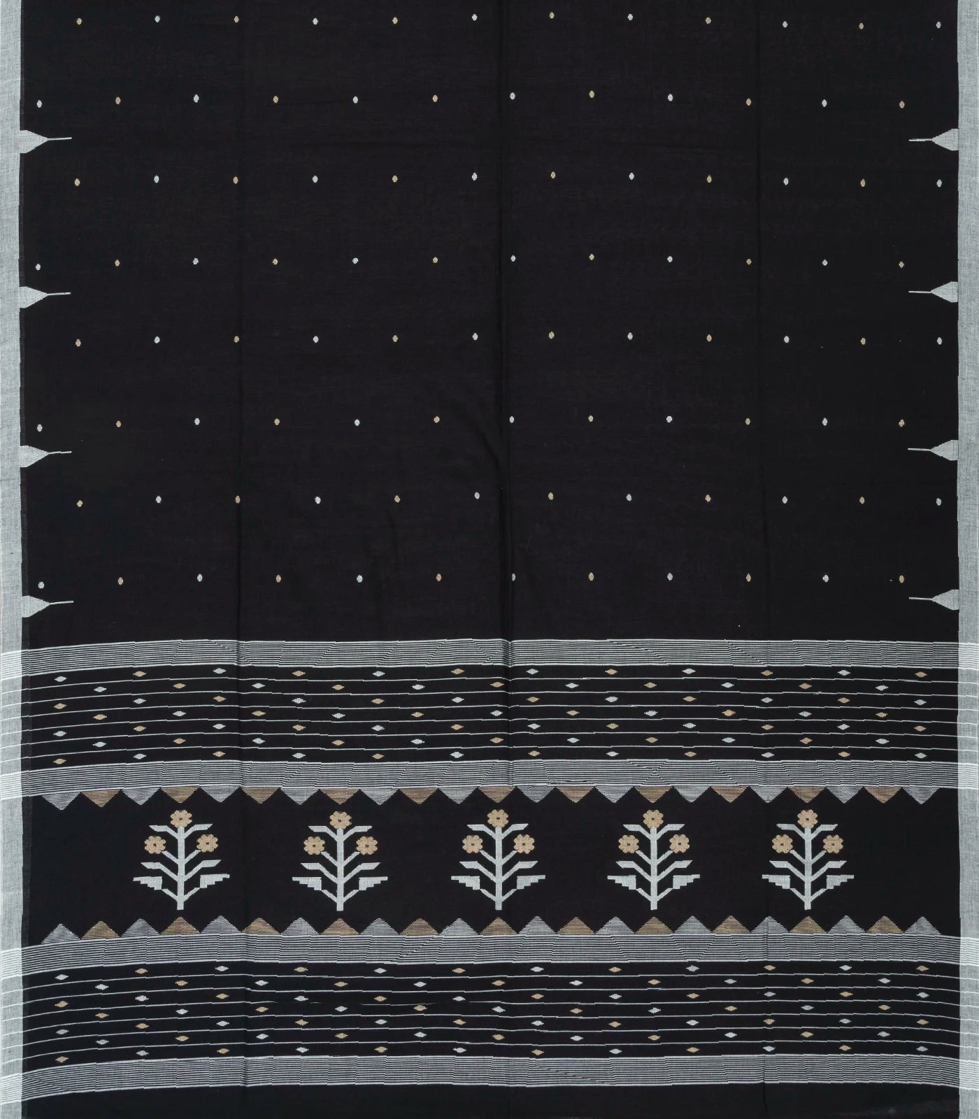 Black Handloom Bengal Cotton Saree With Coin Buttas-BG1285