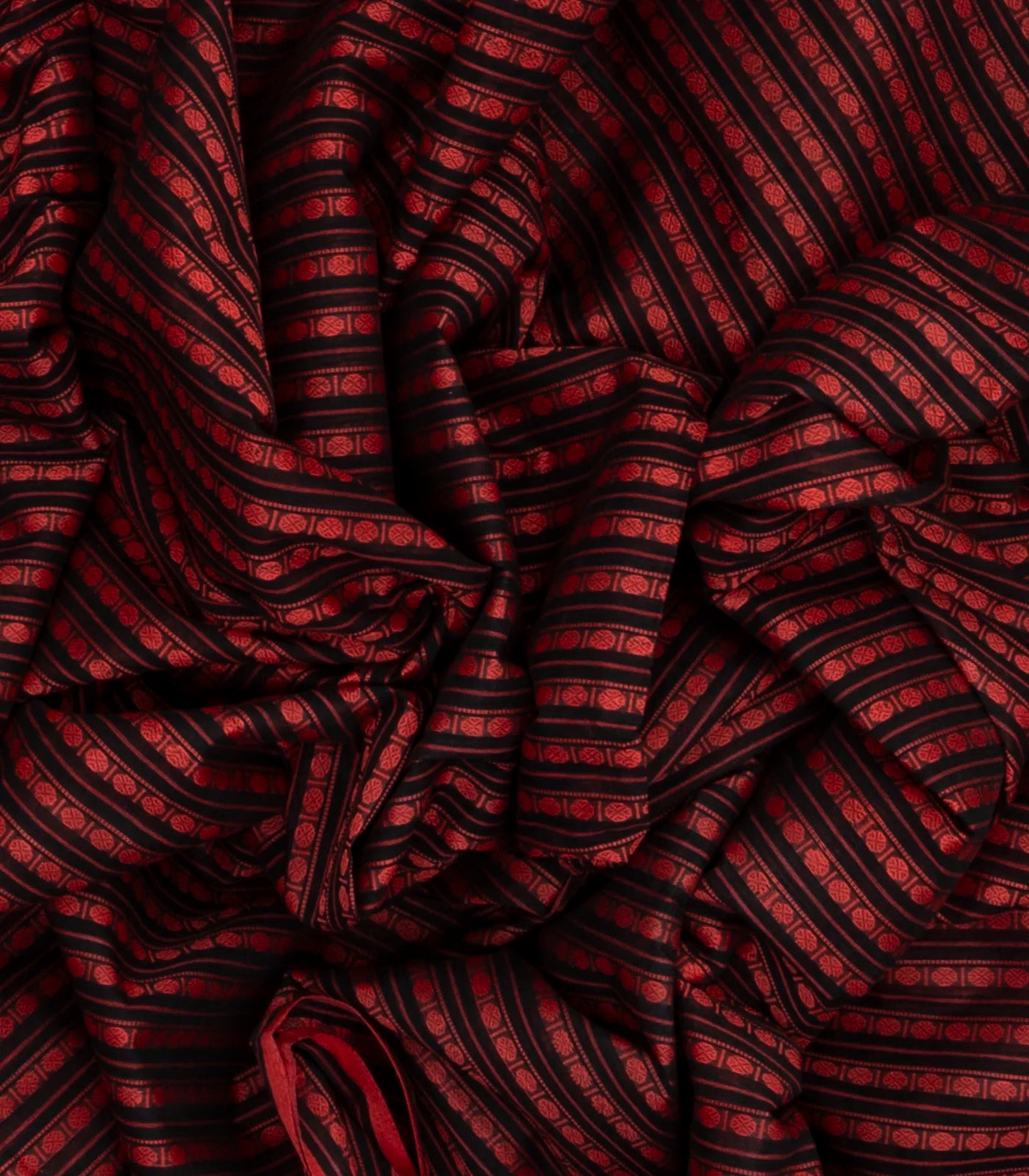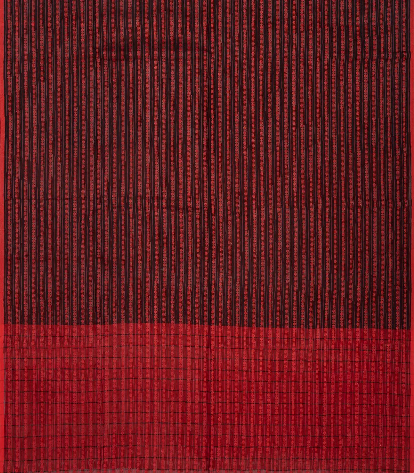 Black Handloom Bengal Cotton Saree With Rudraksham Stripes-BG1060