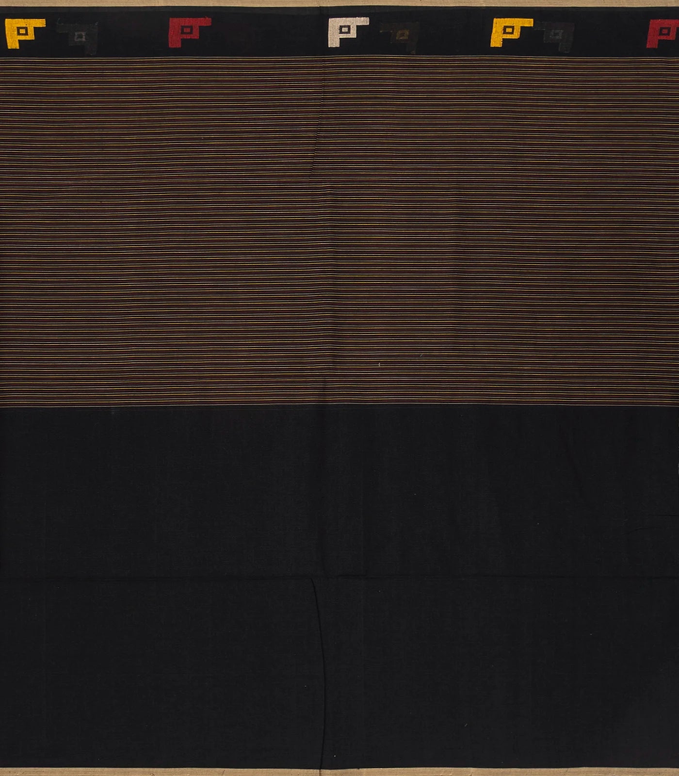 Black Handloom Bengal Cotton Saree With Stripes-BG1388