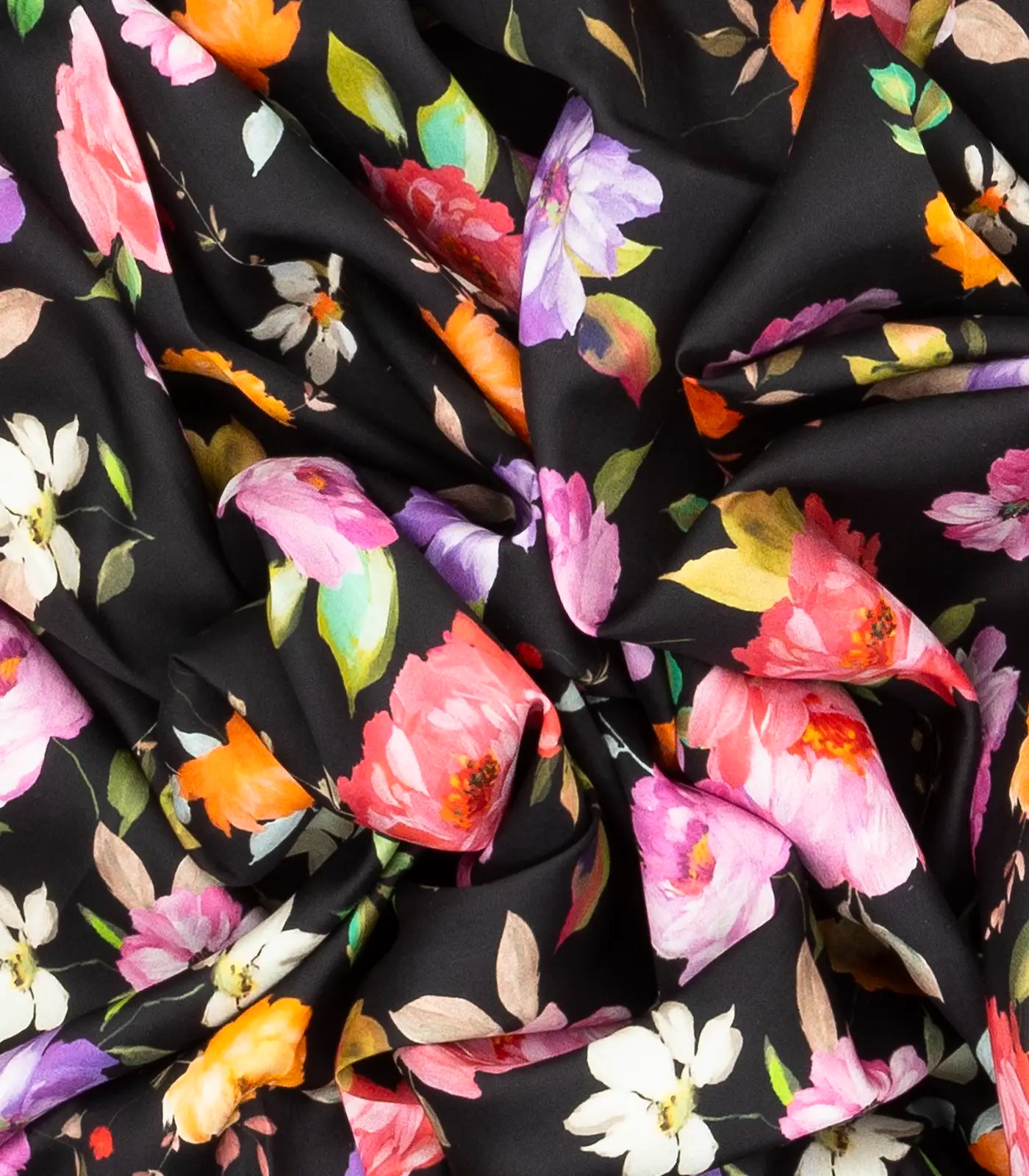 Black Handloom Kanchipuram Korvai Silk Saree Printed With Flower Motifs