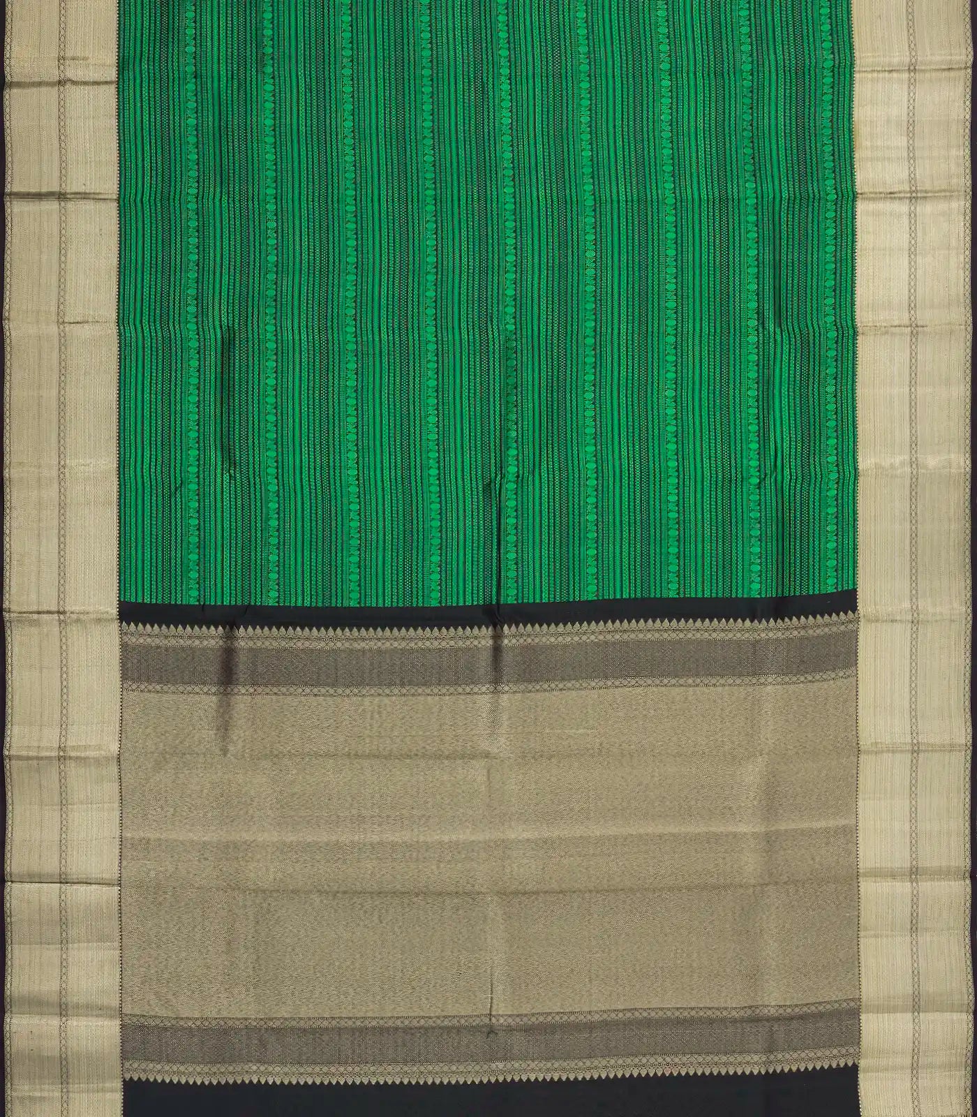 Black Handloom Kanchipuram Silk Saree With Annam Thread work Motifs-KA14789