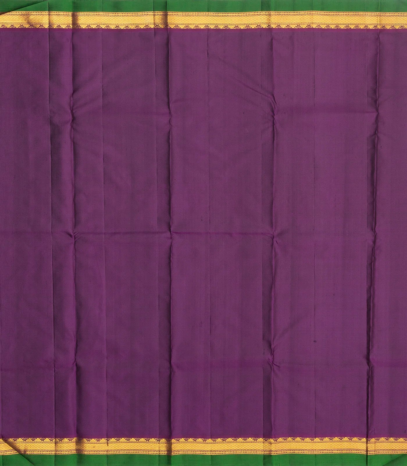 This handwoven kanchipuram silk saree is filled with plain black body along with zari temple border and pallu