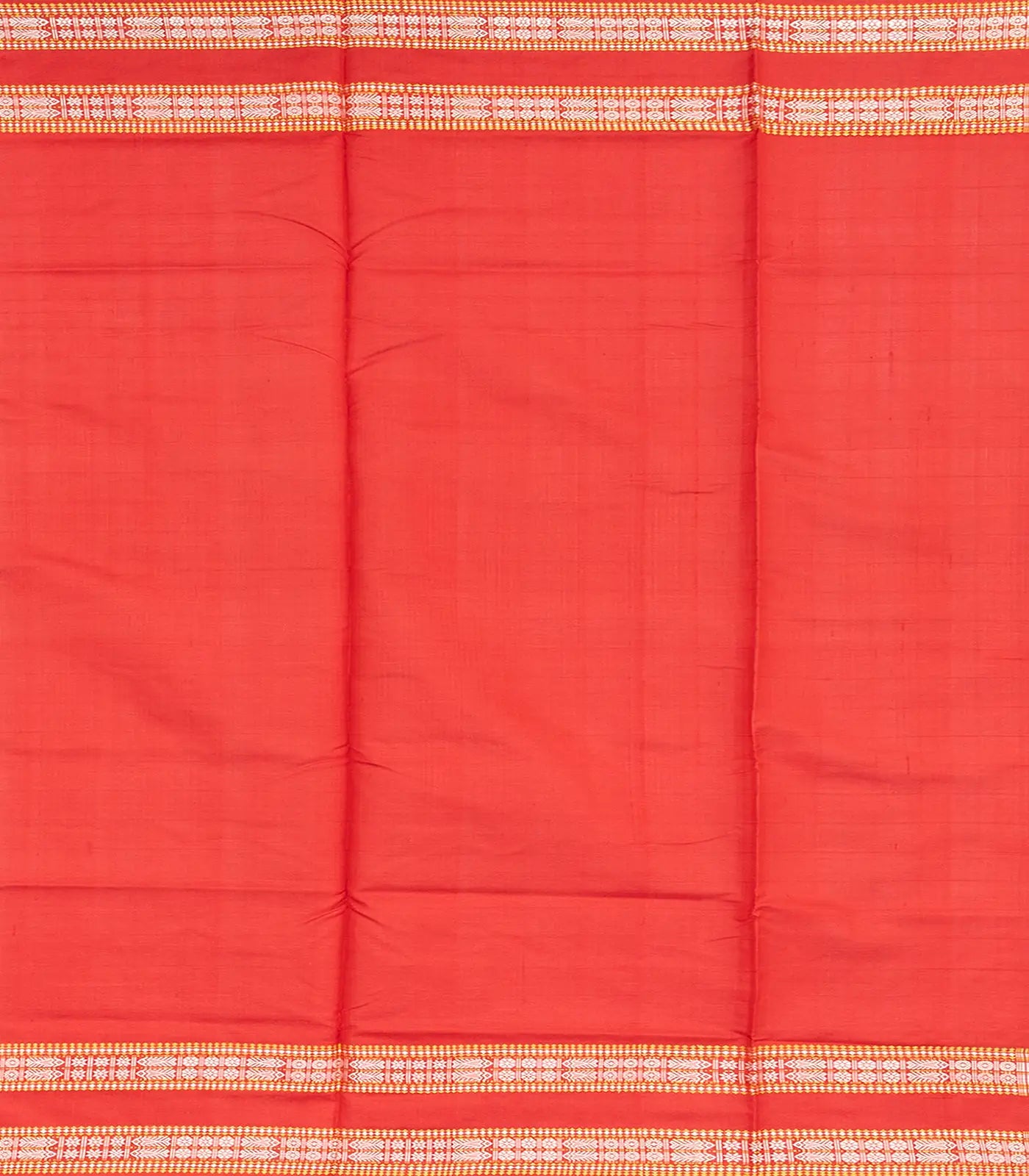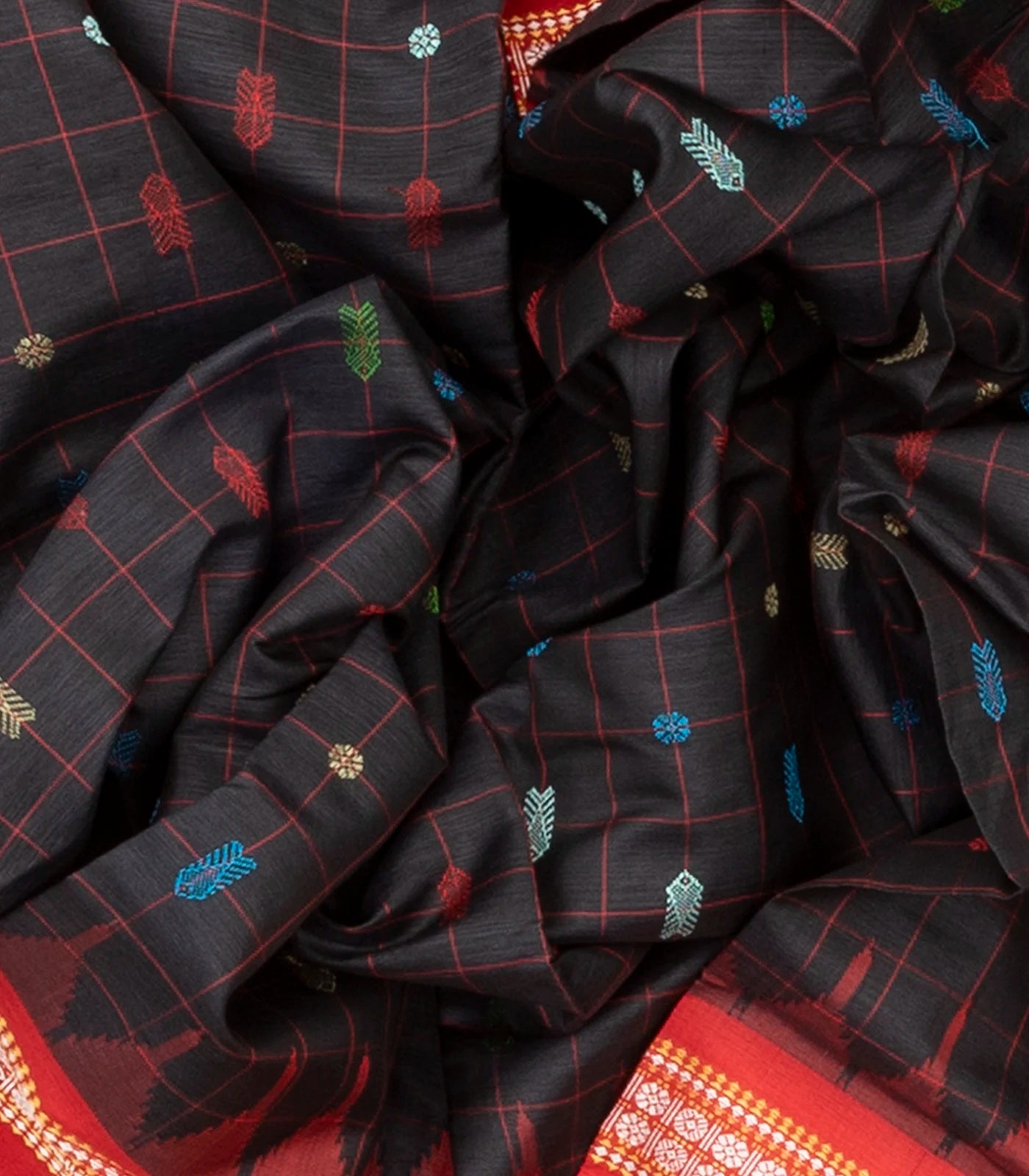 Black Handloom Orissa Silk Saree With Checks & Contrast Red Border-Black
