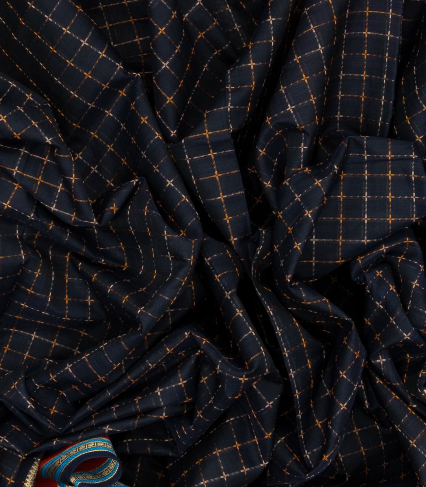 Black Handloom Silk Cotton Saree With Dotted Checks-SC3308